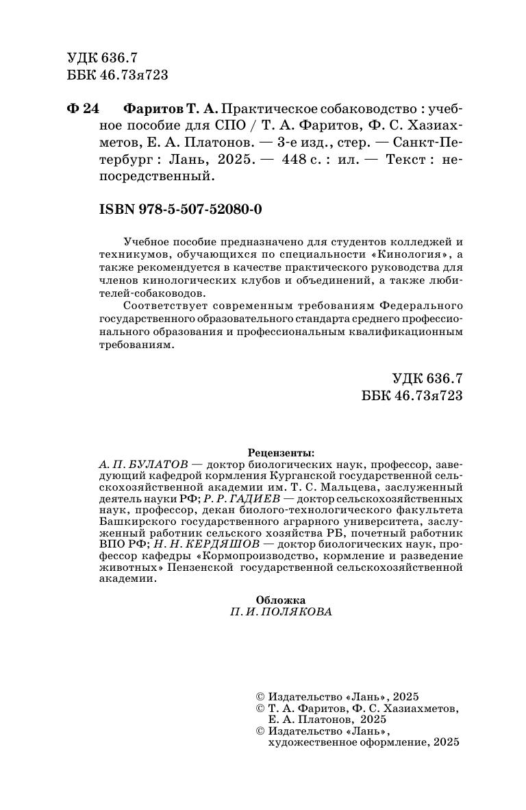 Учебное пособие предназначено для студентов колледжей и техникумов, обучающихся по специальности «Кинология», а также рекомендуется в качестве практического руководства для членов кинологических клубов и объединений, а также любителей-собаководов. Соответствует современным требованиям Федерального государственного образовательного стандарта среднего профессионального образования и профессиональным квалификационным требованиям.