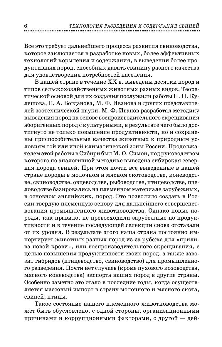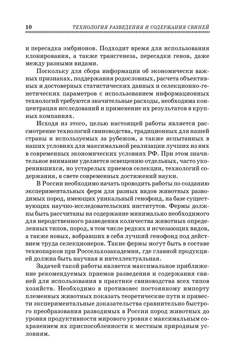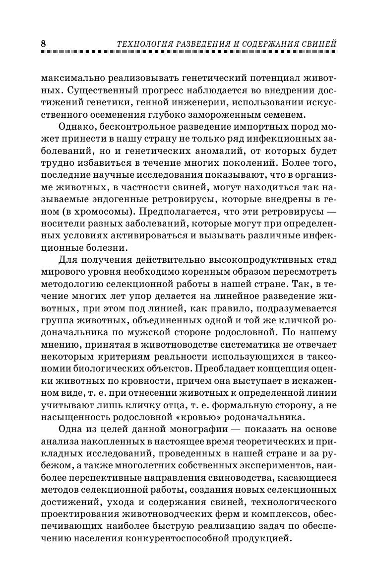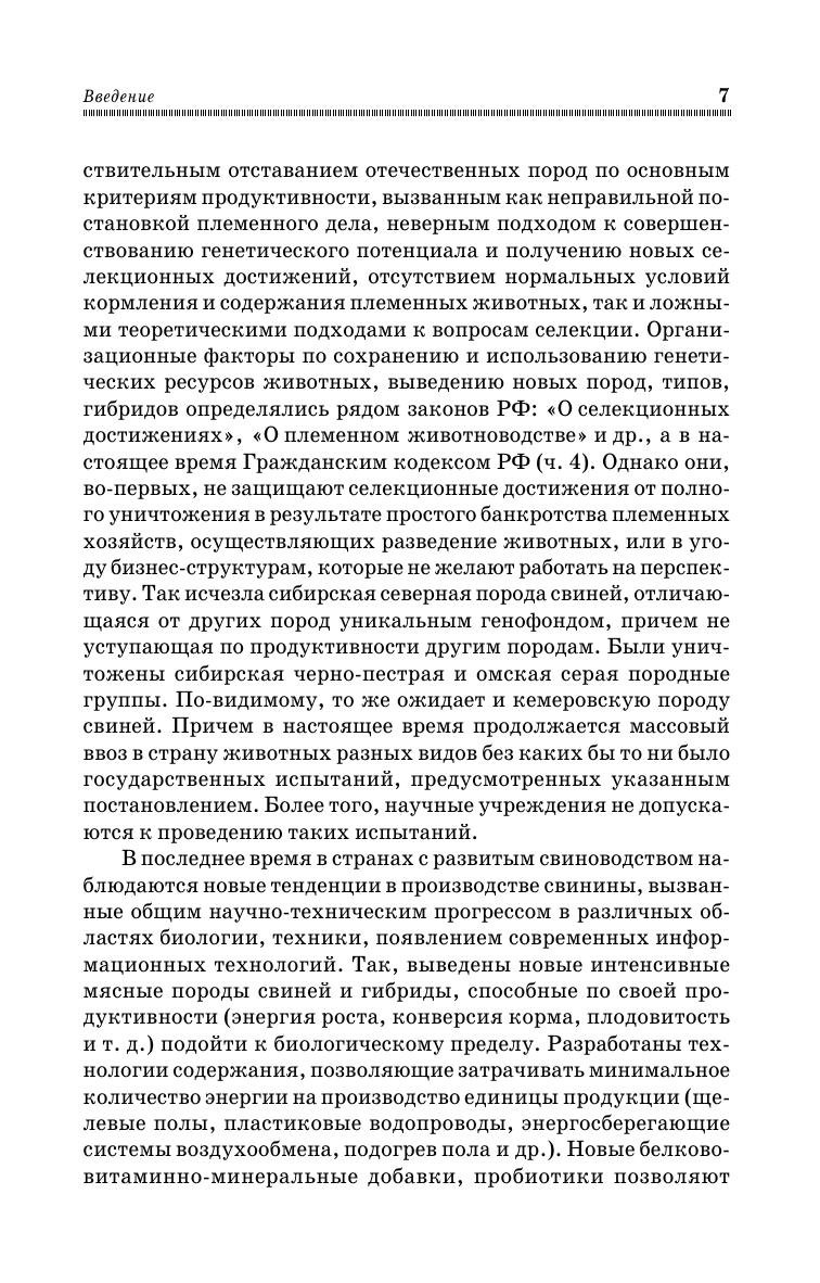 В настоящем учебном пособии излагаются актуальные проблемы свиноводства, наиболее интересующие специалистов в современных условиях. За основу взят анализ накопленных к данному времени теоретических и прикладных исследований, проведенных в нашей стране и за рубежом, а также опыт многолетних собственных экспериментов автора. При этом значительное внимание уделяется освещению приемов генетики, селекции, воспроизводства, технологии содержания свиней в свете современных достижений науки. В частности, показаны наиболее оптимальные пути оценки племенных качеств животных, поиска и использования генетических маркеров, создания новых селекционных достижений на примере выведения самого скороспелого в нашей стране новосибирского типа свиней крупной белой породы. Особое внимание уделено выяснению биологической сущности явлений гетерозиса и инбредной депрессии, на которых основаны приемы подбора пар, скрещивания разных пород для получения наибольшего эффекта разведения. Подробно освещены методы содержания холостых и супоросных маток, хряков, приема опоросов, ухода за подсосными матками и поросятами, выращивания отъемышей, ремонтного молодняка и откорма свиней. Отдельная глава посвящена разработке проектно-технологических решений свиноводческих ферм и комплексов с интенсивным производством, основанных на современных достижениях науки по содержанию животных, механизации производственных процессов и строительства животноводческих помещений. Учебное пособие предназначено для студентов, обучающихся по направлениям «Зоотехния» и «Технология производства и переработки сельскохозяйственной продукции». Также может использоваться аспирантами, научными сотрудниками, специалистами по свиноводству, предпринимателями.