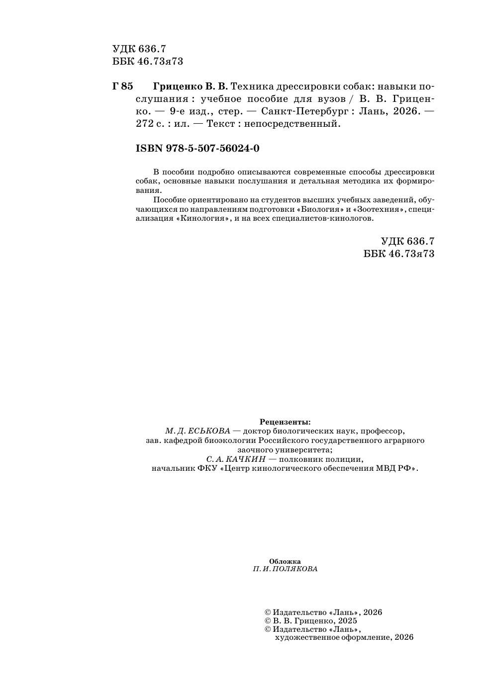В пособии подробно описываются современные способы дрессировки собак, основные навыки послушания и детальная методика их формирования. Пособие ориентировано на студентов высших учебных заведений, обучающихся по направлениям подготовки «Биология» и «Зоотехния», специализация «Кинология» и на всех специалистов-кинологов.