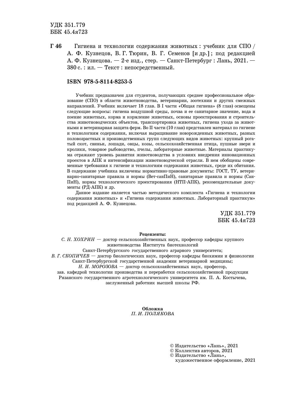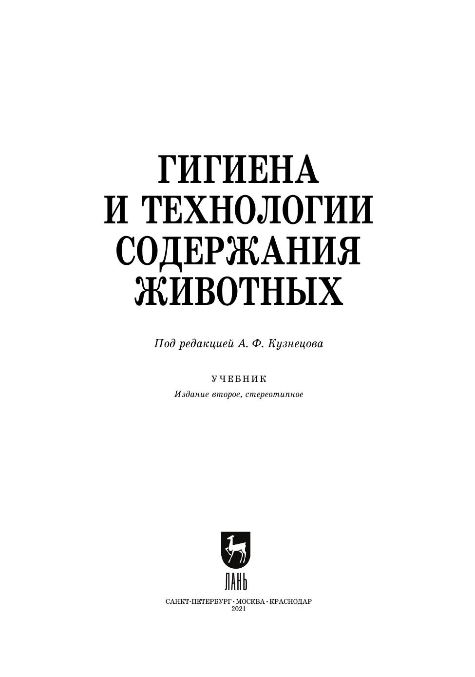 Данное издание является частью методического комплекта «Гигиена и технологии содержания животных» и «Гигиена содержания животных. Лабораторный практикум» под редакцией А. Ф. Кузнецова.