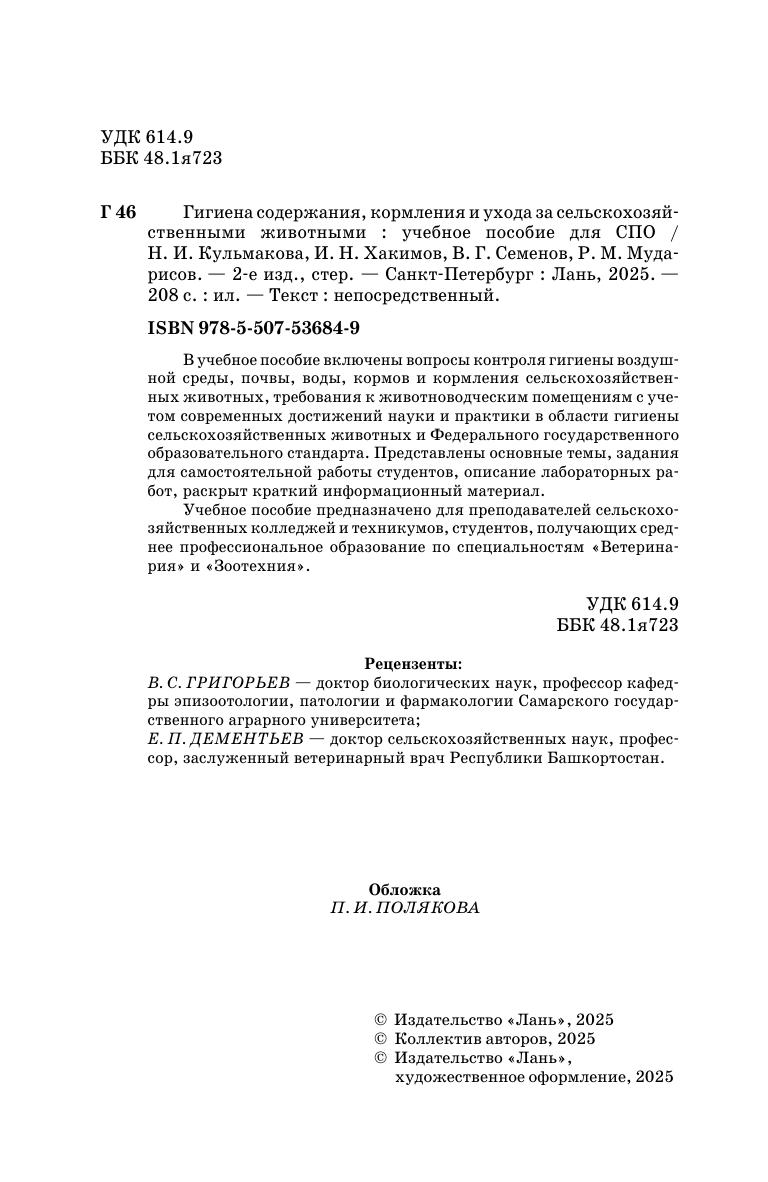 В учебное пособие включены вопросы контроля гигиены воздушной среды, почвы, воды, кормов и кормления сельскохозяйственных животных, требования к животноводческим помещениям с учетом современных достижений науки и практики в области гигиены сельскохозяйственных животных и Федерального государственного образовательного стандарта. Представлены основные темы, задания для самостоятельной работы студентов, описание лабораторных работ, раскрыт краткий информационный материал. Учебное пособие предназначено для преподавателей сельскохозяйственных колледжей и техникумов, студентов, получающих среднее профессиональное образование по специальностям «Ветеринария» и «Зоотехния».