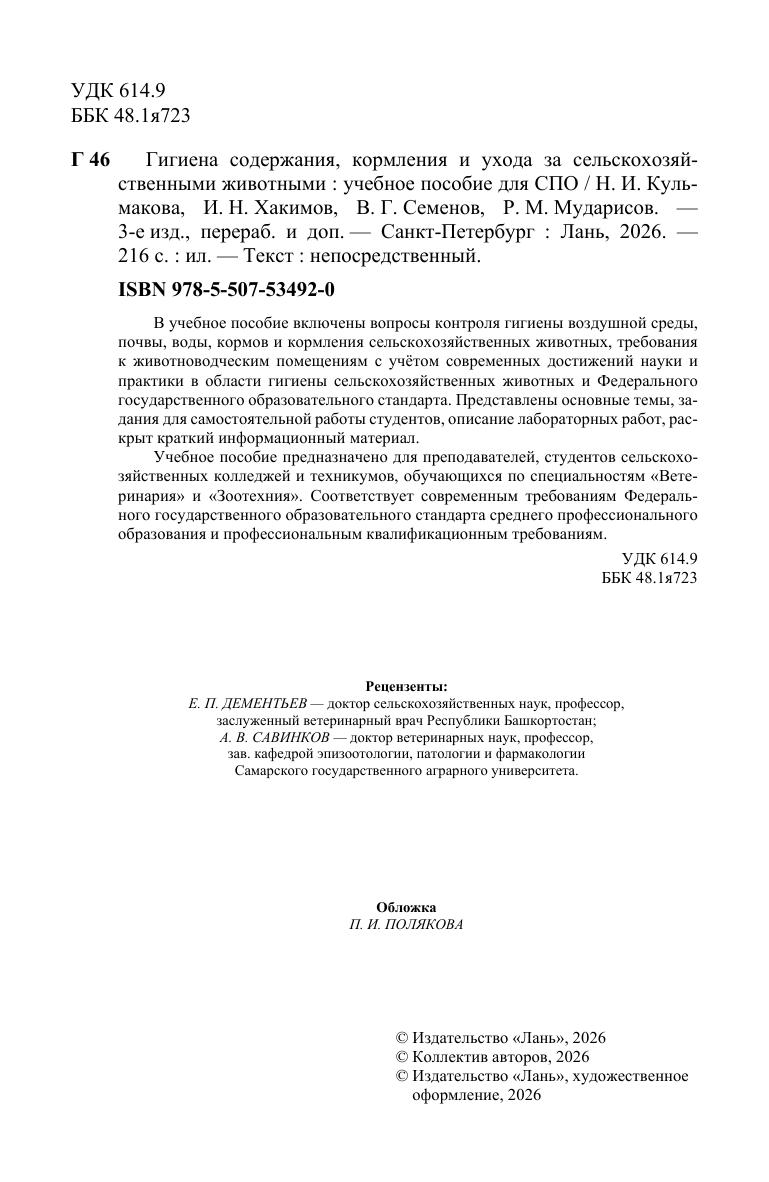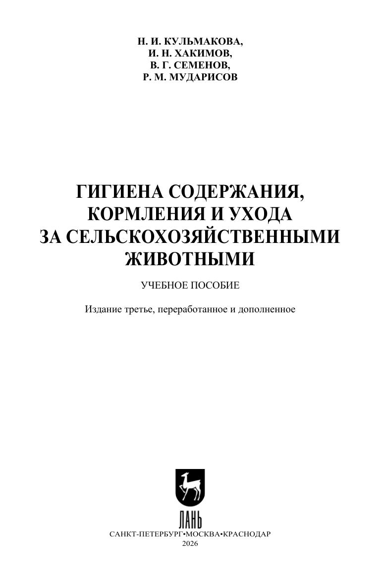 В учебное пособие включены вопросы контроля гигиены воздушной среды, почвы, воды, кормов и кормления сельскохозяйственных животных, требования к животноводческим помещениям с учётом современных достижений науки и практики в области гигиены сельскохозяйственных животных и Федерального государственного образовательного стандарта. Представлены основные темы, задания для самостоятельной работы студентов, описание лабораторных работ, раскрыт краткий информационный материал. Учебное пособие предназначено для преподавателей, студентов сельскохозяйственных колледжей и техникумов, обучающихся по специальностям «Ветеринария» и «Зоотехния». Соответствует современным требованиям Федерального государственного образовательного стандарта среднего профессионального образования и профессиональным квалификационным требованиям.