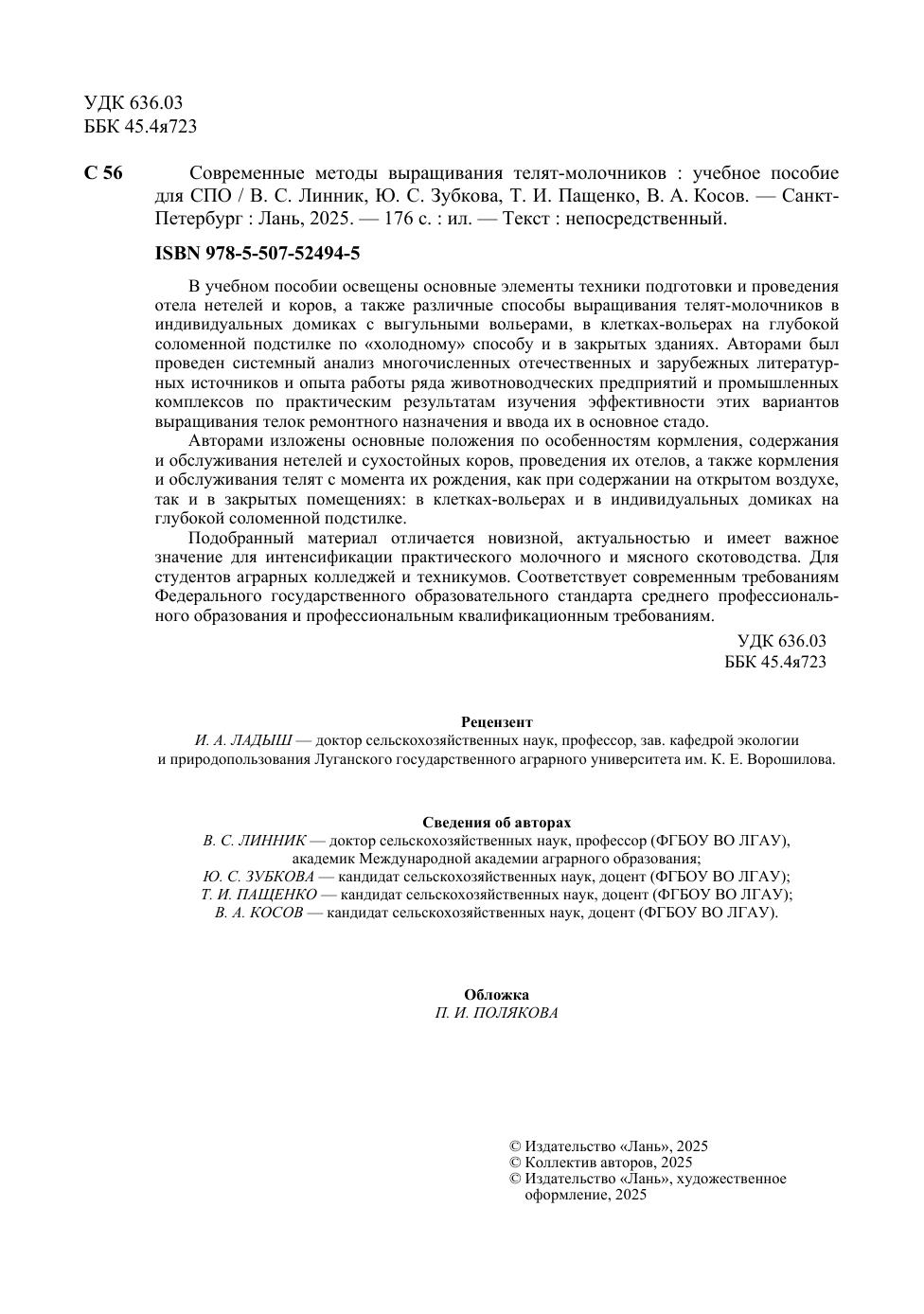 Авторы: Линник В. С., Зубкова Ю. С., Пащенко Т. И., Косов В. А.
