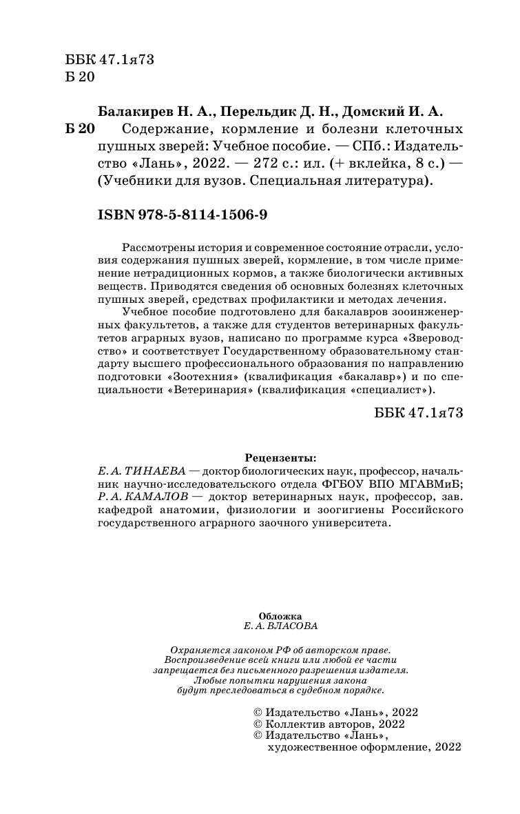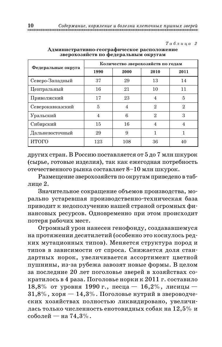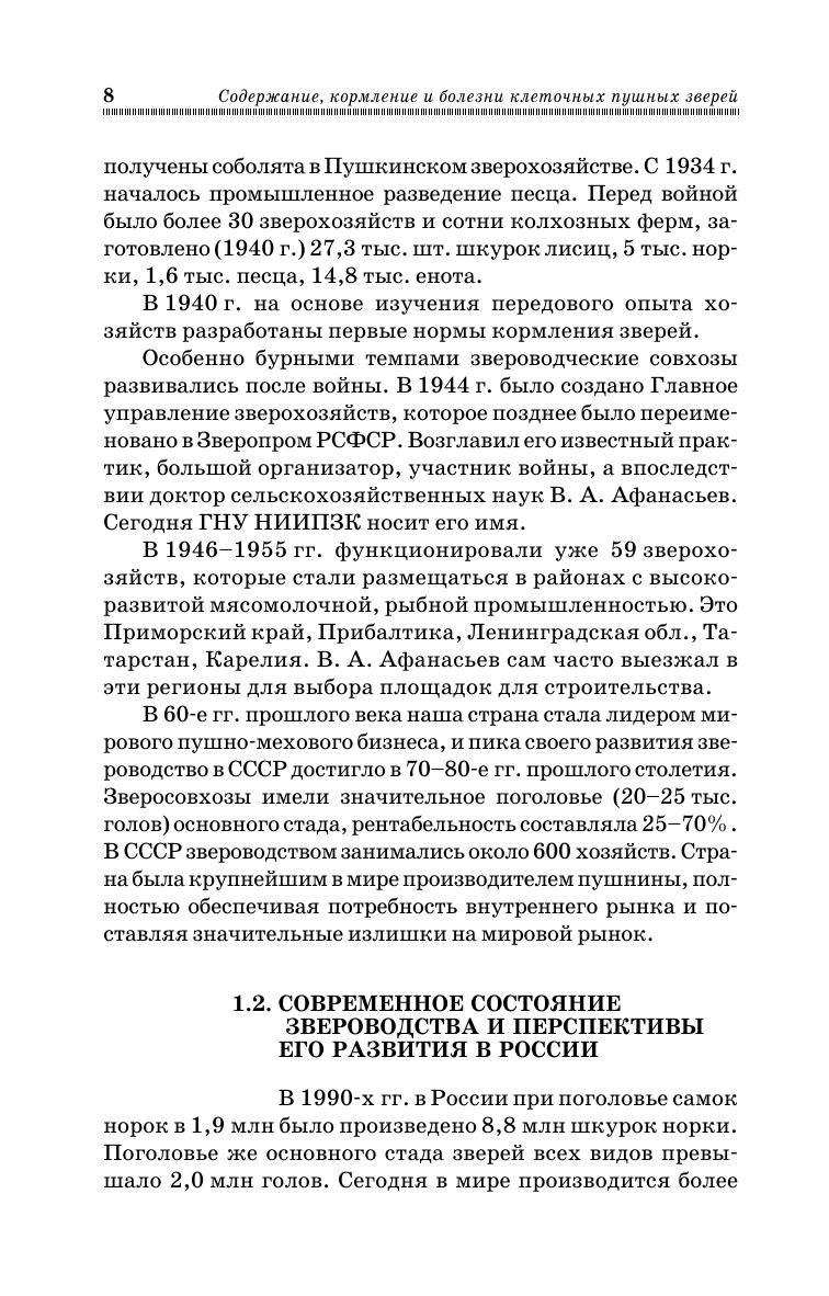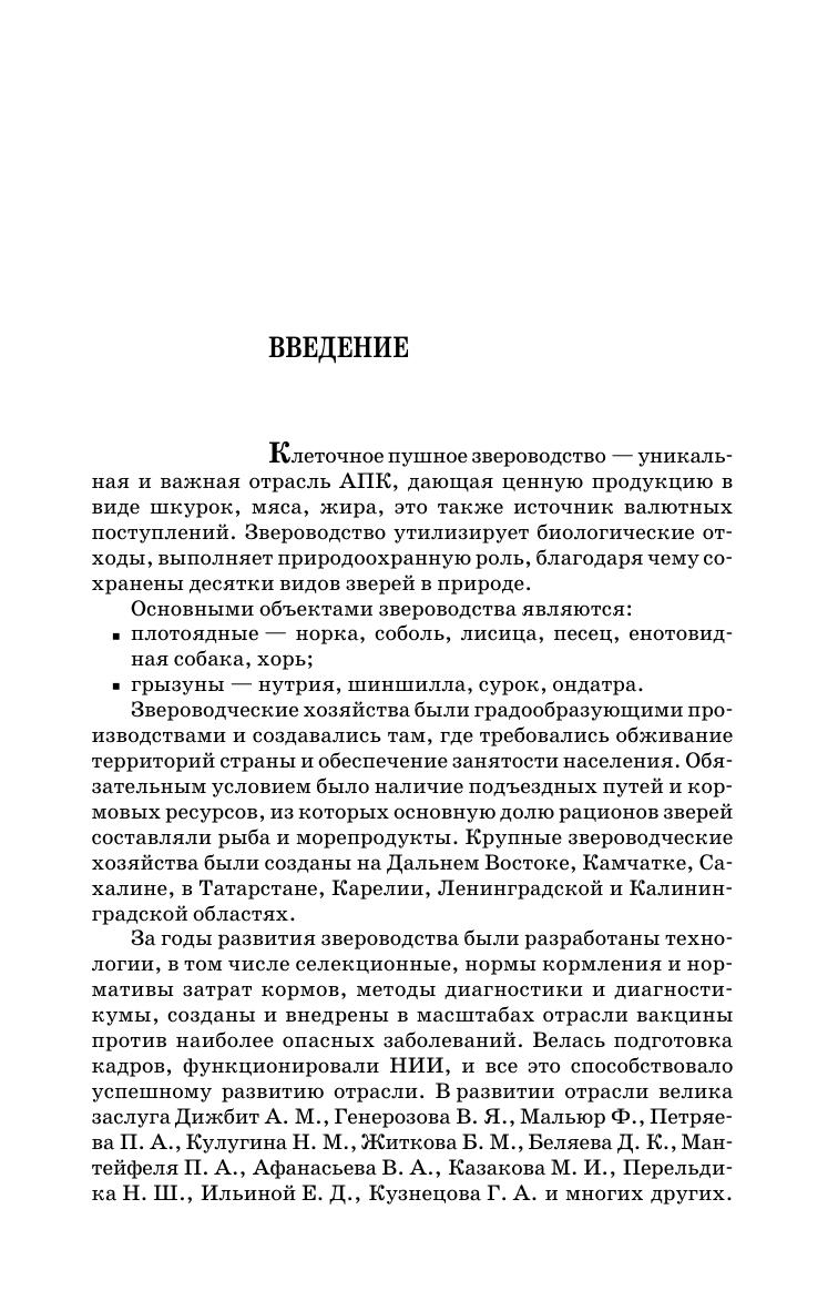 Рассмотрены история и современное состояние отрасли, условия содержания пушных зверей, кормление, в том числе применение нетрадиционных кормов, а также биологически активных веществ. Приводятся сведения об основных болезнях клеточных пушных зверей, средствах профилактики и методах лечения. Учебное пособие подготовлено для бакалавров зооинженерных факультетов, а также для студентов ветеринарных факультетов аграрных вузов, написано по программе курса «Звероводство» и соответствует Государственному образовательному стандарту высшего профессионального образования по направлению подготовки «Зоотехния» (квалификация бакалавр) и по специальности «Ветеринария» (квалификация специалист).
