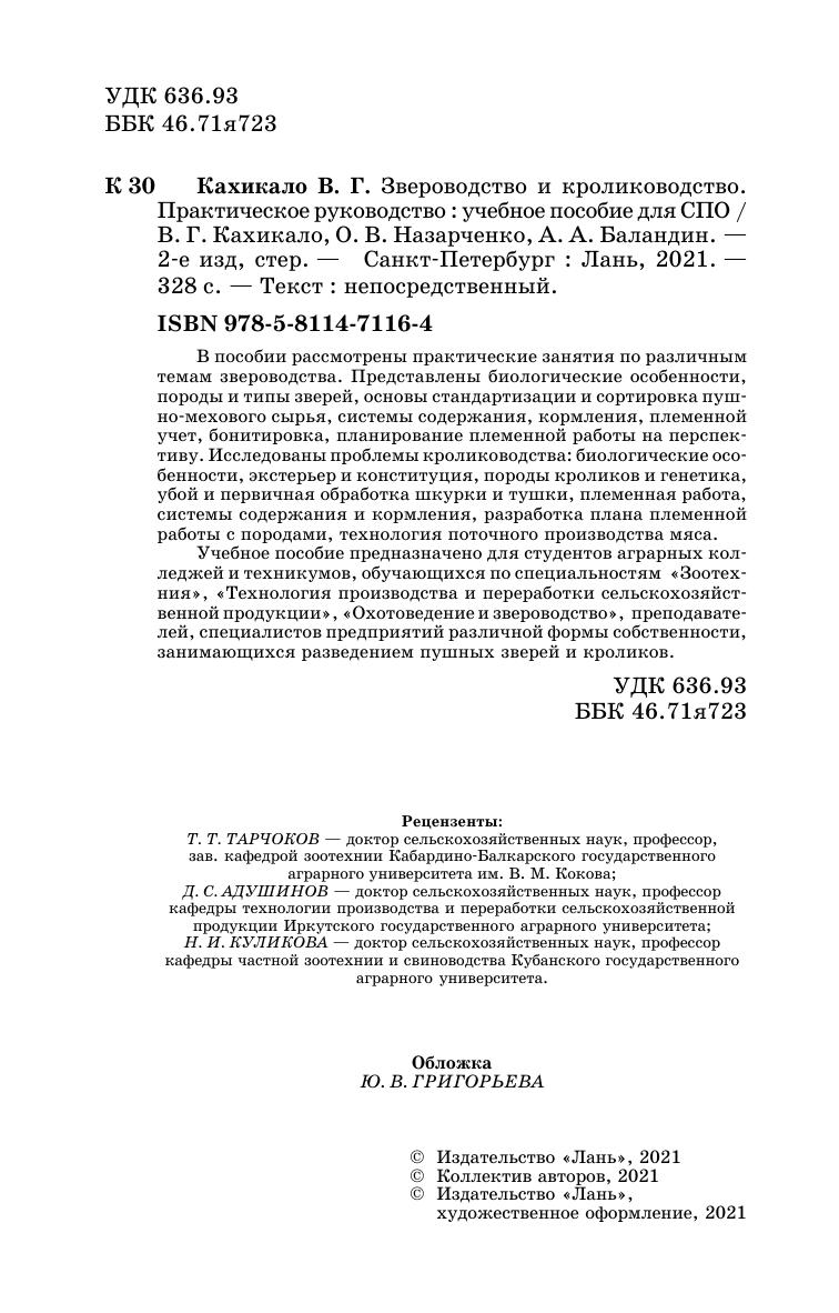 Учебное пособие предназначено для студентов аграрных колледжей и техникумов, обучающихся по специальностям «Зоотехния», «Технология производства и переработки сельскохозяйственной продукции», «Охотоведение и звероводство», преподавателей, специалистов предприятий различной формы собственности, занимающихся разведением пушных зверей и кроликов.