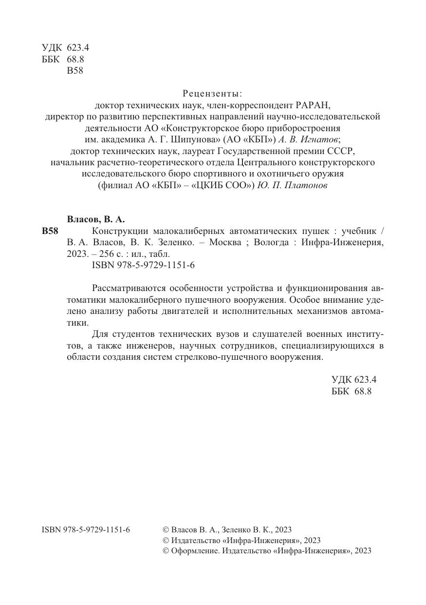 Для студентов технических вузов и слушателей военных институтов, а также инженеров, научных сотрудников, специализирующихся в области создания систем стрелково-пушечного вооружения.