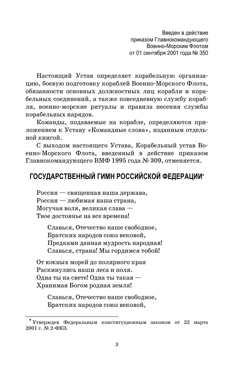 Настоящее издание содержит текст Корабельного устава Военно-Морского Флота Российской Федерации, введенный в действие Приказом Главнокомандующего Военно-Морским Флотом Российской Федерации от 1 сентября 2001 года № 350.
