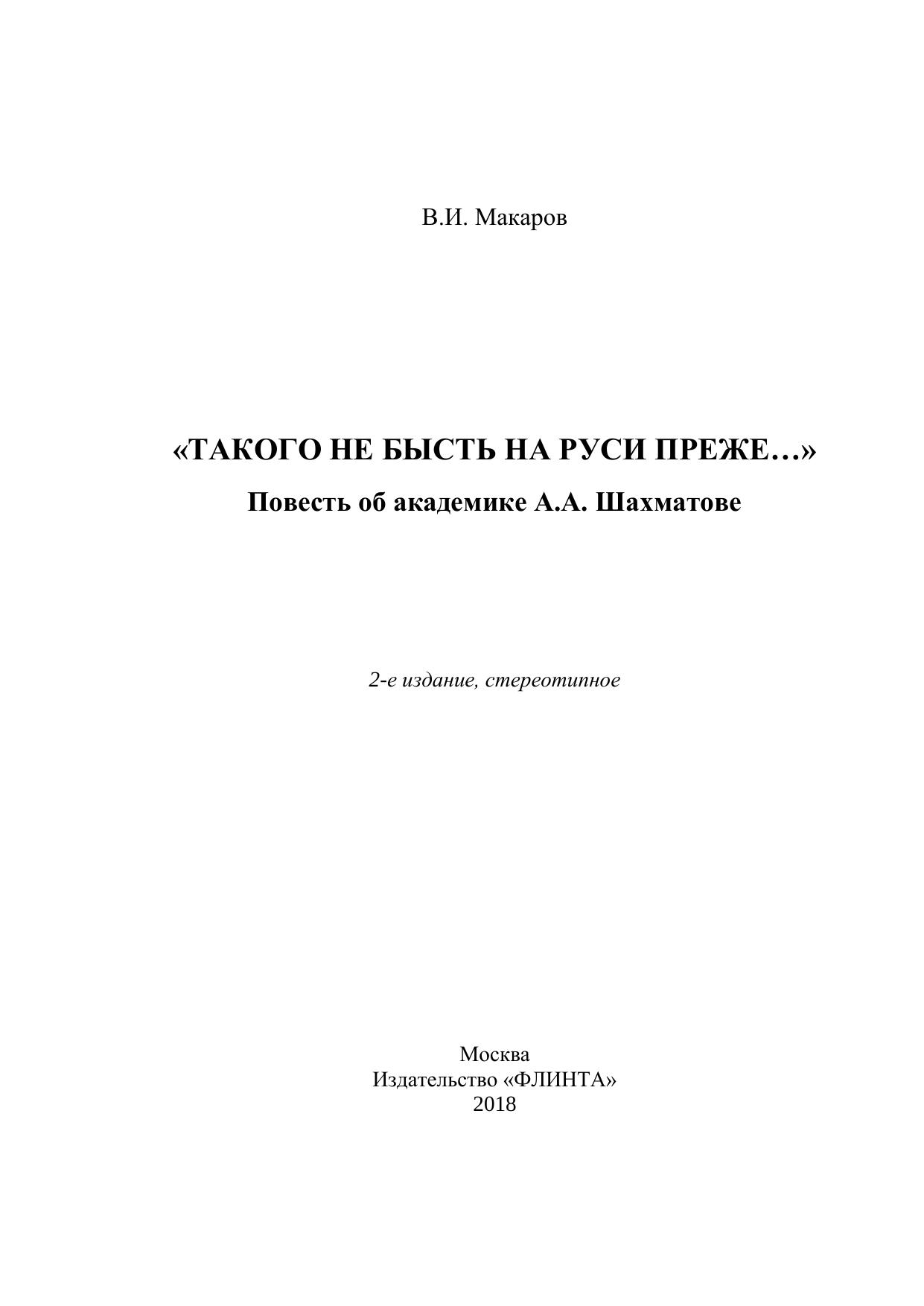 "ТАКОГО НЕ БЫСТЬ НА РУСИ ПРЕЖЕ…" Повесть об академике А.А. Шахматове