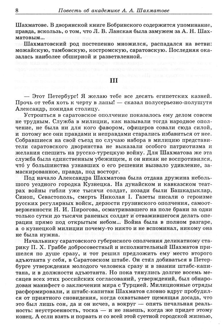 волнующей, чем деятельность Алексея Александровича Шахматова. Биография его — гениального языковеда и исключительно прекрасного человека — неизбежно должна превратиться в повесть о строительстве «молодой еще науки о русском языке…». Духовная личность этого ученого являлась тем центром, из которого исходили широкие замыслы коллективных начинаний в области славяно-русской филологии и в котором находили себе поддержку научные и культурные устремления всех знакомых ему людей…» — так охарактеризовал своего наставника и сотоварища другой великий русский ученый В.В. Виноградов. Написанная просто и увлекательно, «Повесть об академике А.А. Шахматове» будет интересна не только филологам и всем интересующимся историей русской культуры, но и самому широкому кругу читателей.