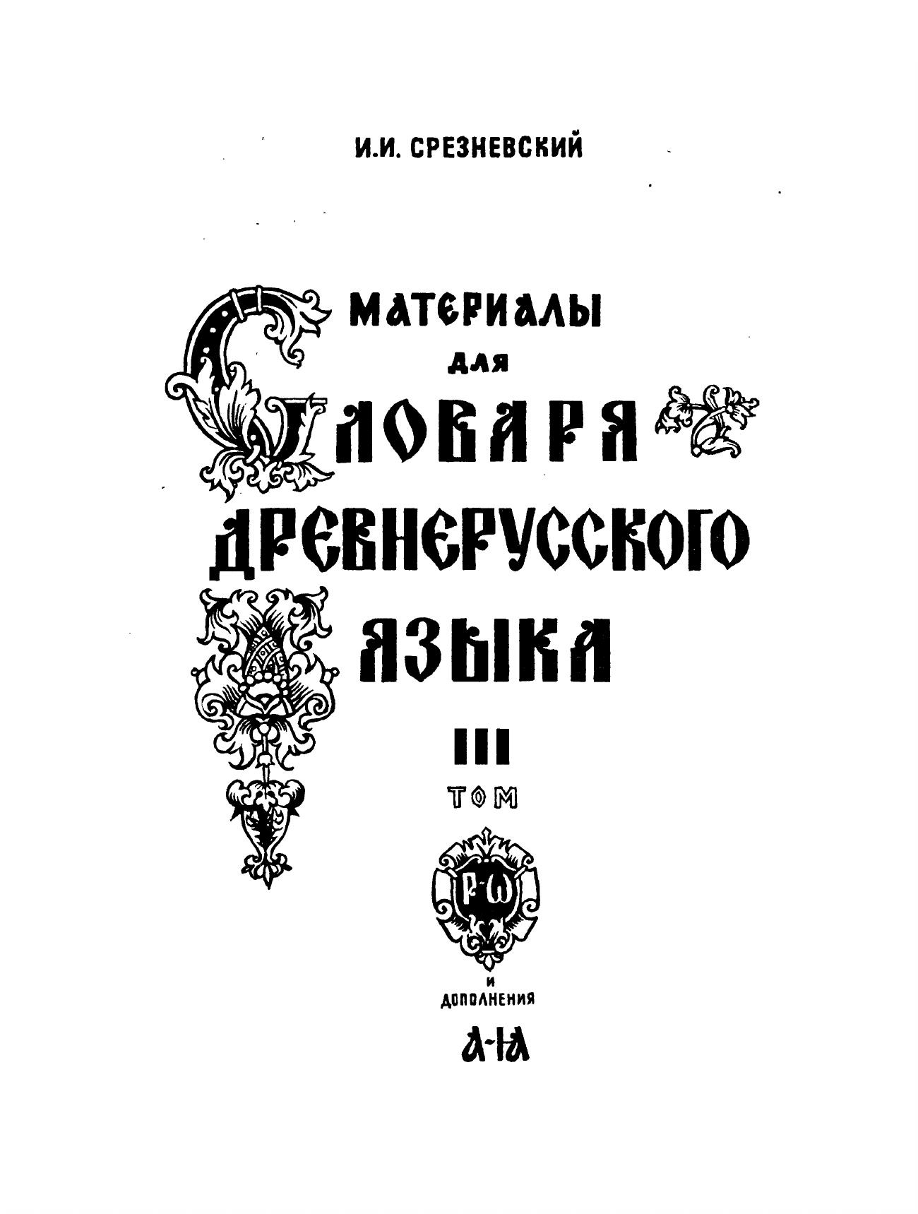 Материалы для словаря древнерусского языка. В 3 т. Т. III. Р – Я и дополнения от А до Я