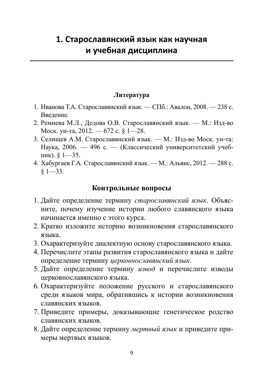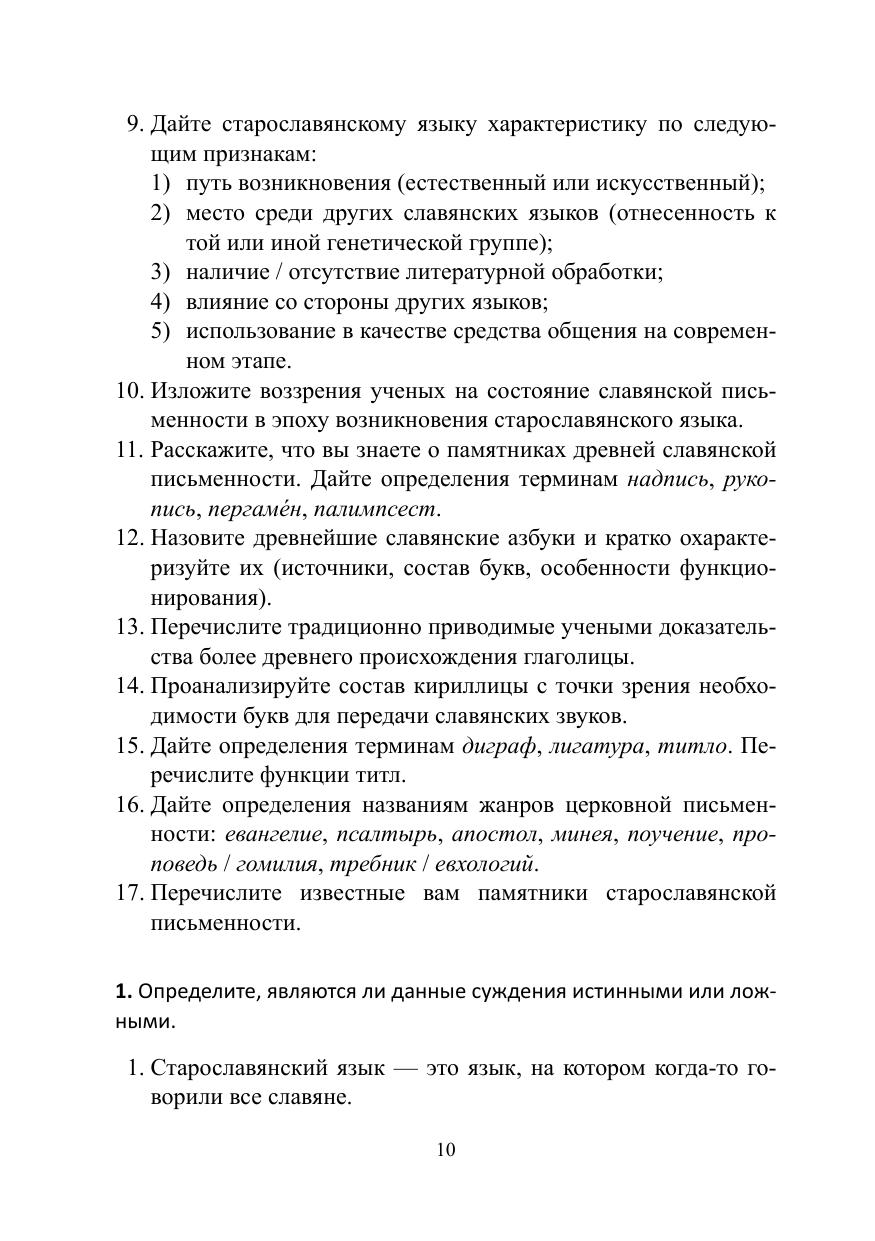 курса «Старославянский язык», по каждой из которых сформулиро-