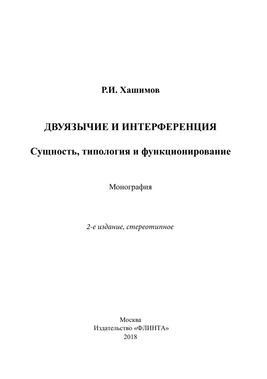 Двуязычие и интерференция: Сущность, типология и функционирование