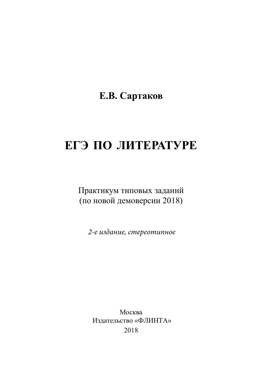 ЕГЭ по литературе. Практикум типовых заданий (по новой демоверсии 2018)