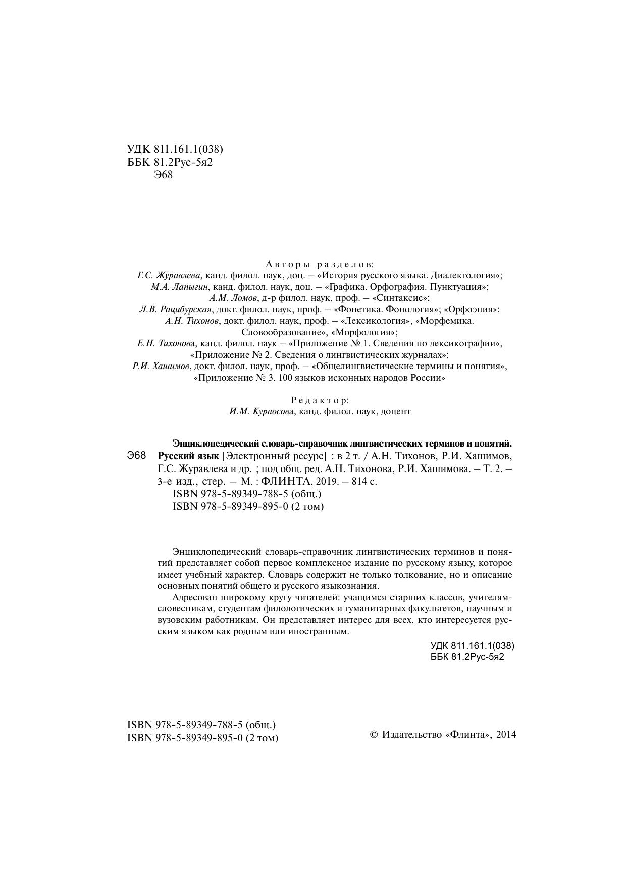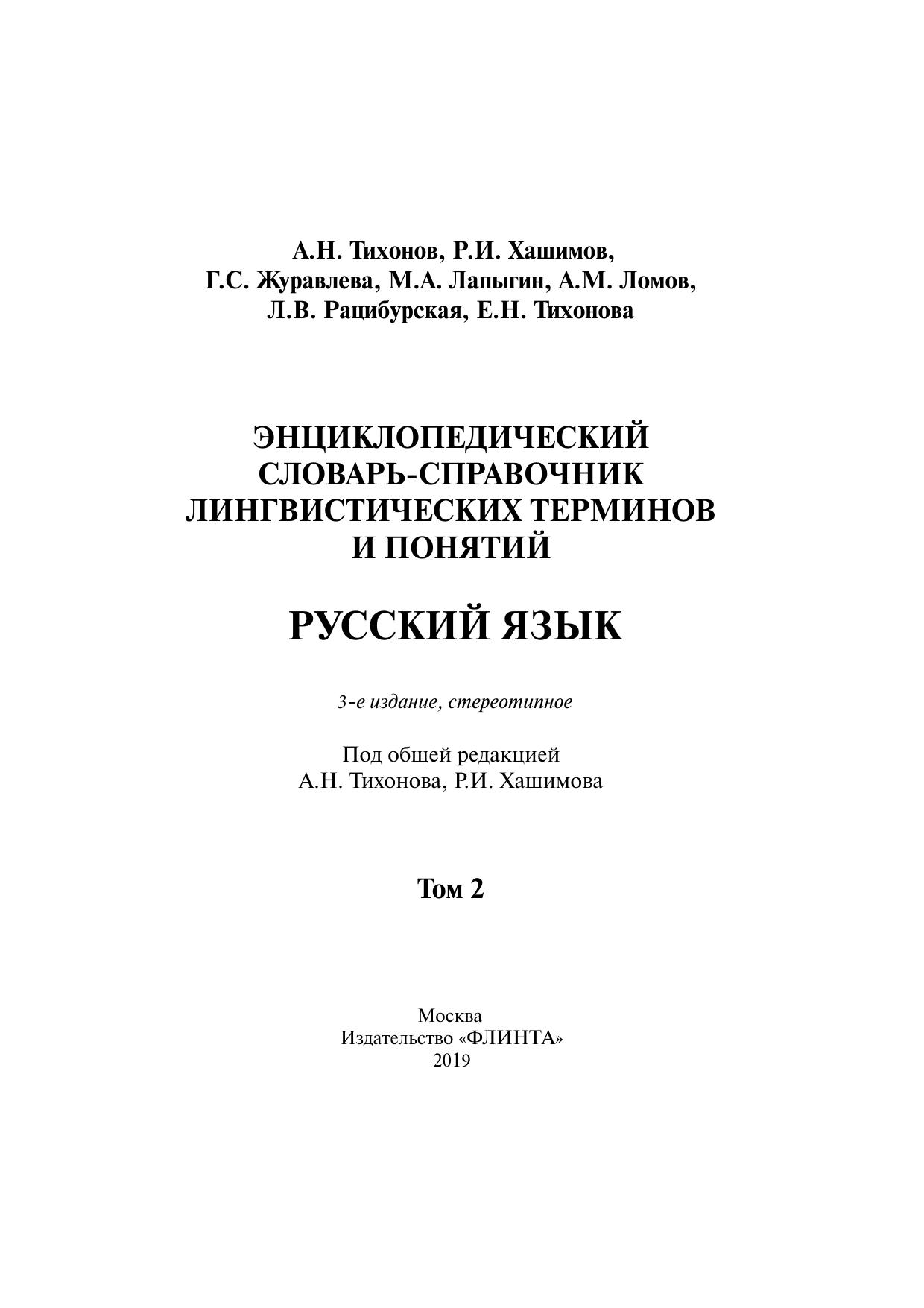 Энциклопедический словарь-справочник лингвистических терминов и понятий. Русский язык : в 2 т.