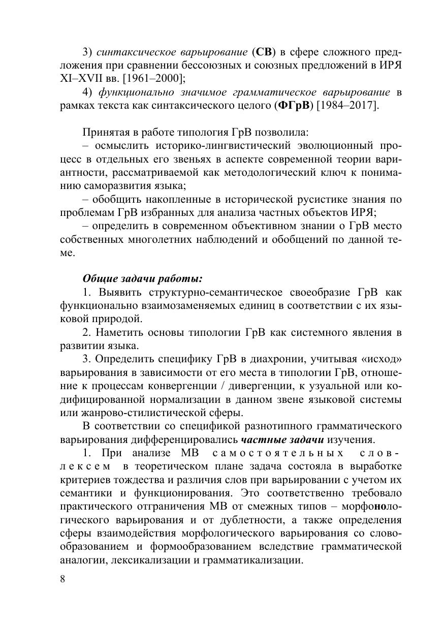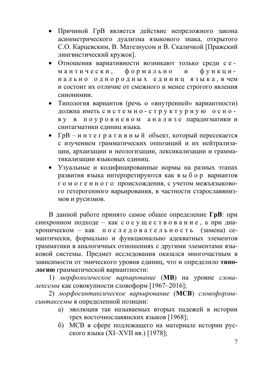 В монографии обобщается многолетний опыт изучения грамматической вариантности как универсального общеязыкового фактора эволюции в развитии русского языка. Предложенная типология вариантов имеет системно-структурную основу и реализуется в поуровневом анализе парадигматики и синтагматики единиц языка, грамматических оппозиций и их нейтрализации, в синхронии и диахронии. На большом фактическом материале русской письменности XI–XVII веков и регионального делового языка XVIII века показана сложность и неравномерность развития различных типов грамматической вариантности.