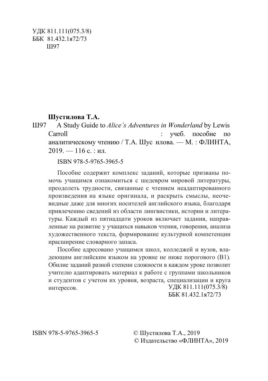 A stude Guide to Alice`s Adventures in Wonderland by Lewis Carroll: учеб. пособие по аналитическому чтению