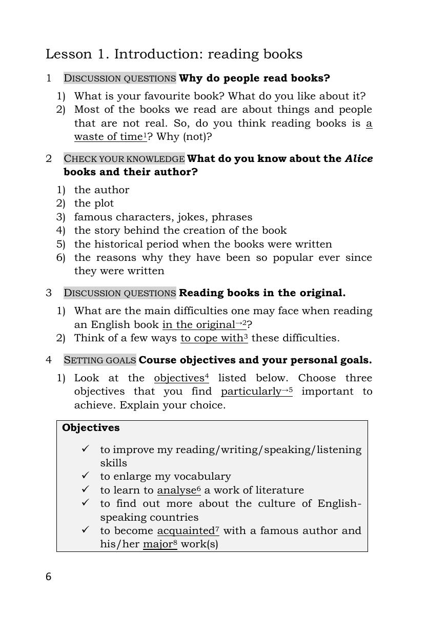 привлечению сведений из области лингвистики, истории и литературы. Каждый из пятнадцати уроков включает задания, направленные на развитие у учащихся навыков чтения, говорения, анализа художественного текста, формирование культурной компетенции и расширение словарного запаса.