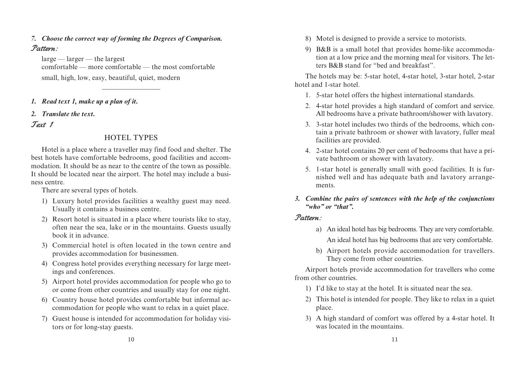 В пособии предлагается материал по темам: «Отели», «Туризм», «Транспортные услуги», «Питание», «Направление развития и рекламирование в туризме», «Работа в сфере туризма», «Развлечения», «Осмотр достопримечательностей», «Проведение конференций». Тексты включают материалы зарубежной прессы, что дает возможность не только совершенствовать навыки владения английским языком, но и узнать много полезной информации о тенденциях развития в индустрии туризма в мире. Структура учебного пособия предполагает развитие всех навыков речевой деятельности.