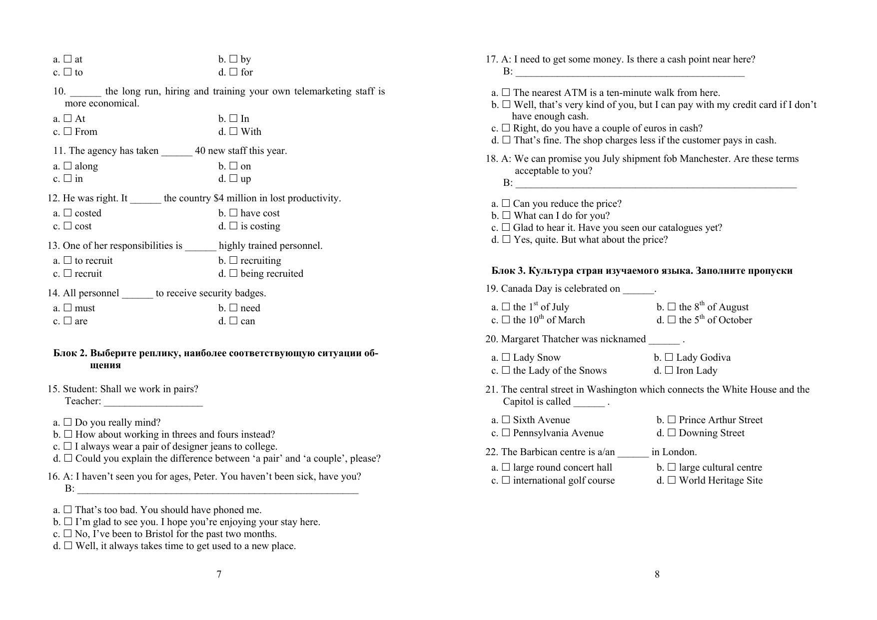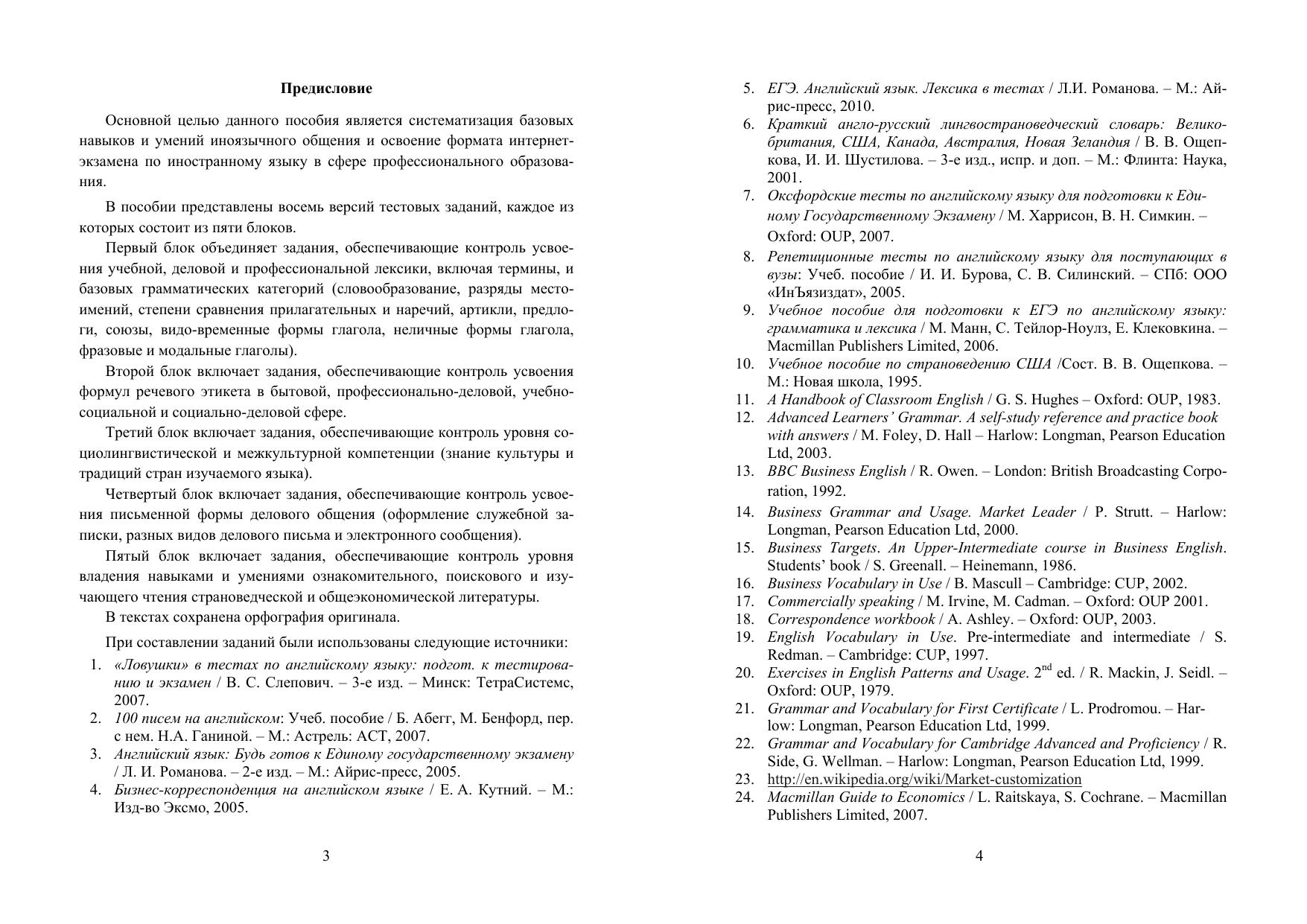 Основной целью данного пособия является систематизация базовых навыков и умений иноязычного общения и освоение формата интернет-экзамена по иностранному языку в сфере профессионального образования. Задания составлены с учетом требований к обязательному минимуму содержания основной образовательной программы по иностранному языку для студентов факультетов экономики по образцу демонстрационной версии ФЭПО.