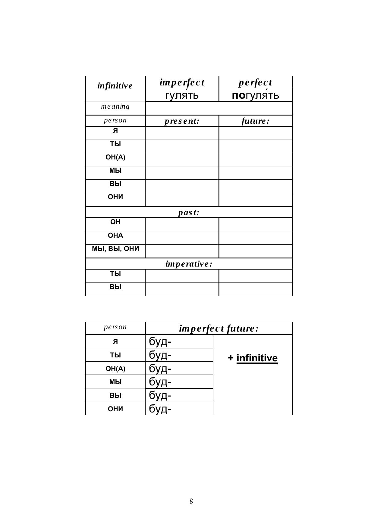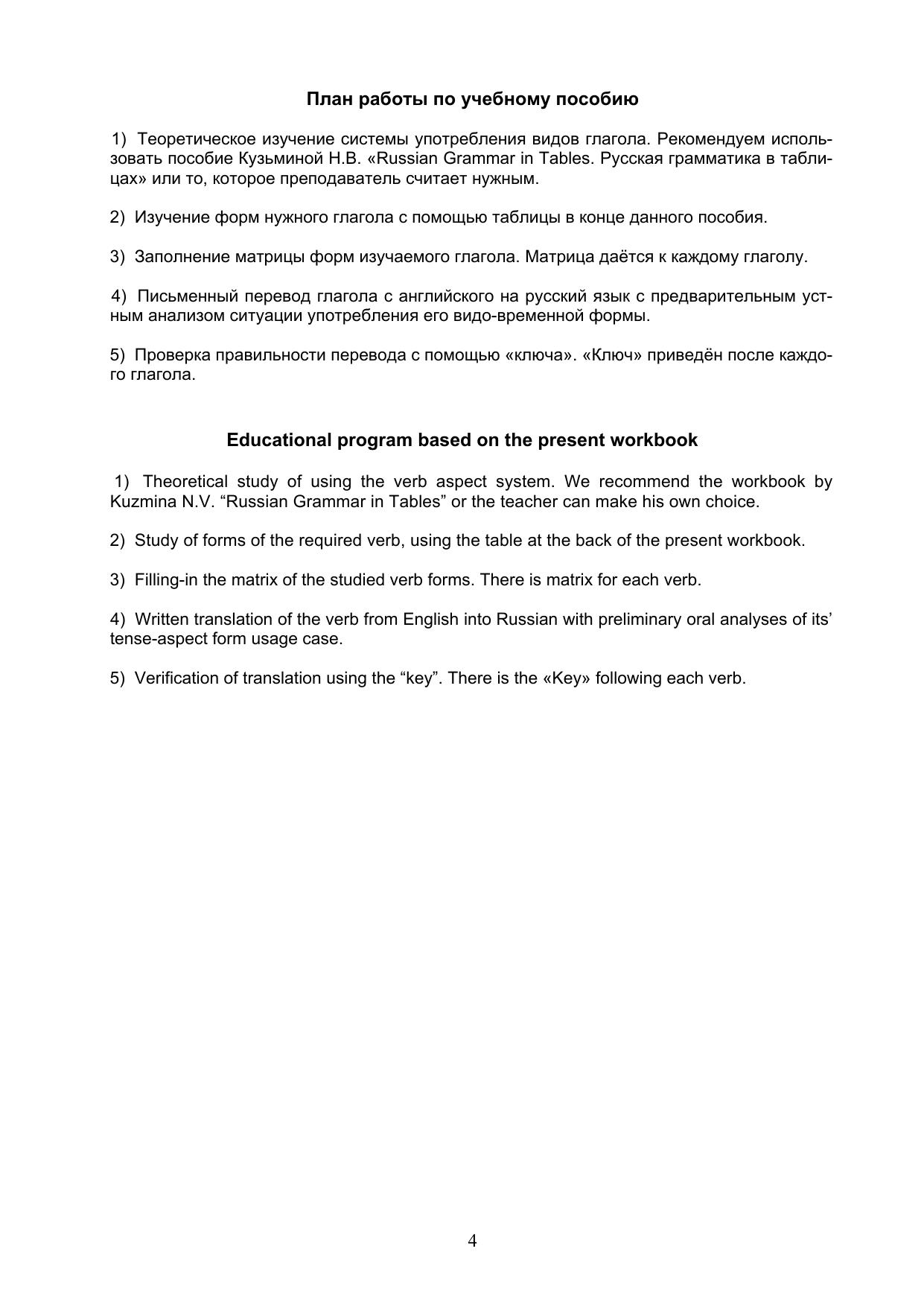 The present workbook is intended for studying of aspectual — temporal system of the Russian verb. Selecting of perfective and imperfective verb aspect is one of the most difficult tasks of studying Russian for foreigners.