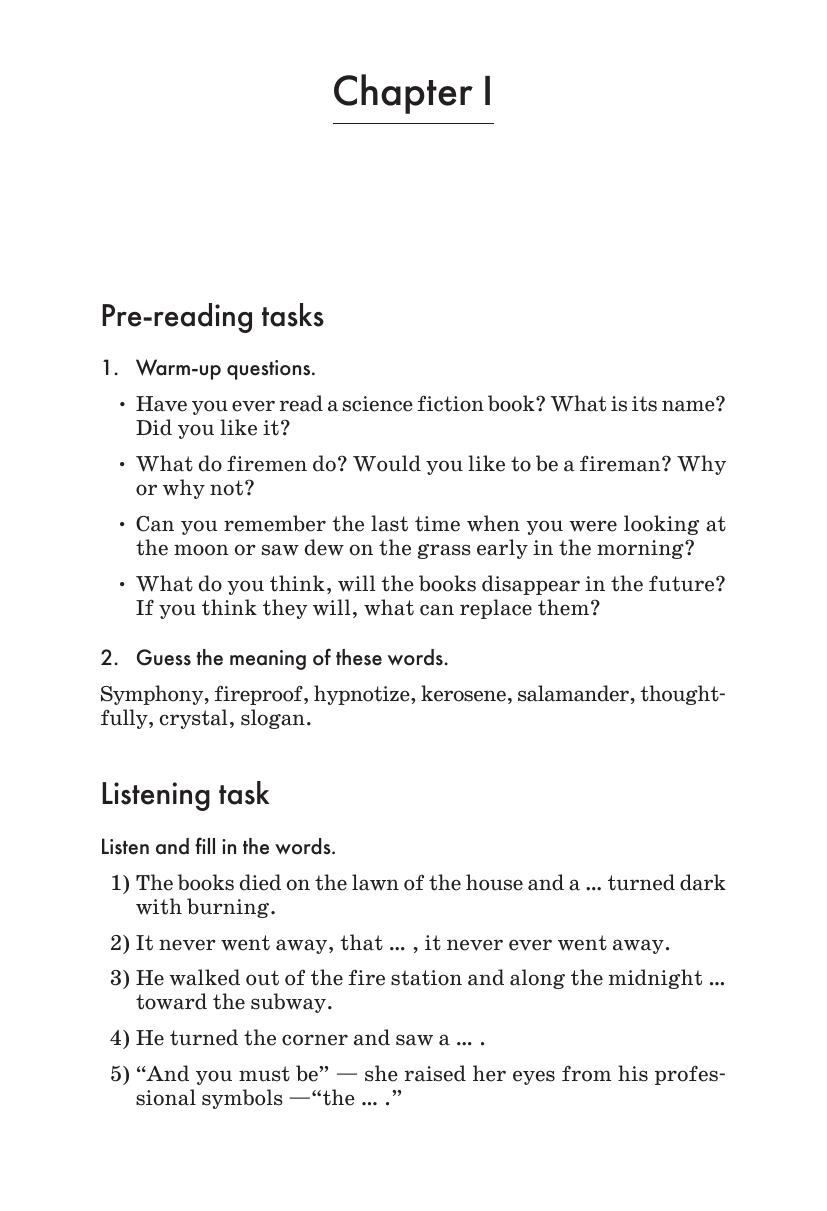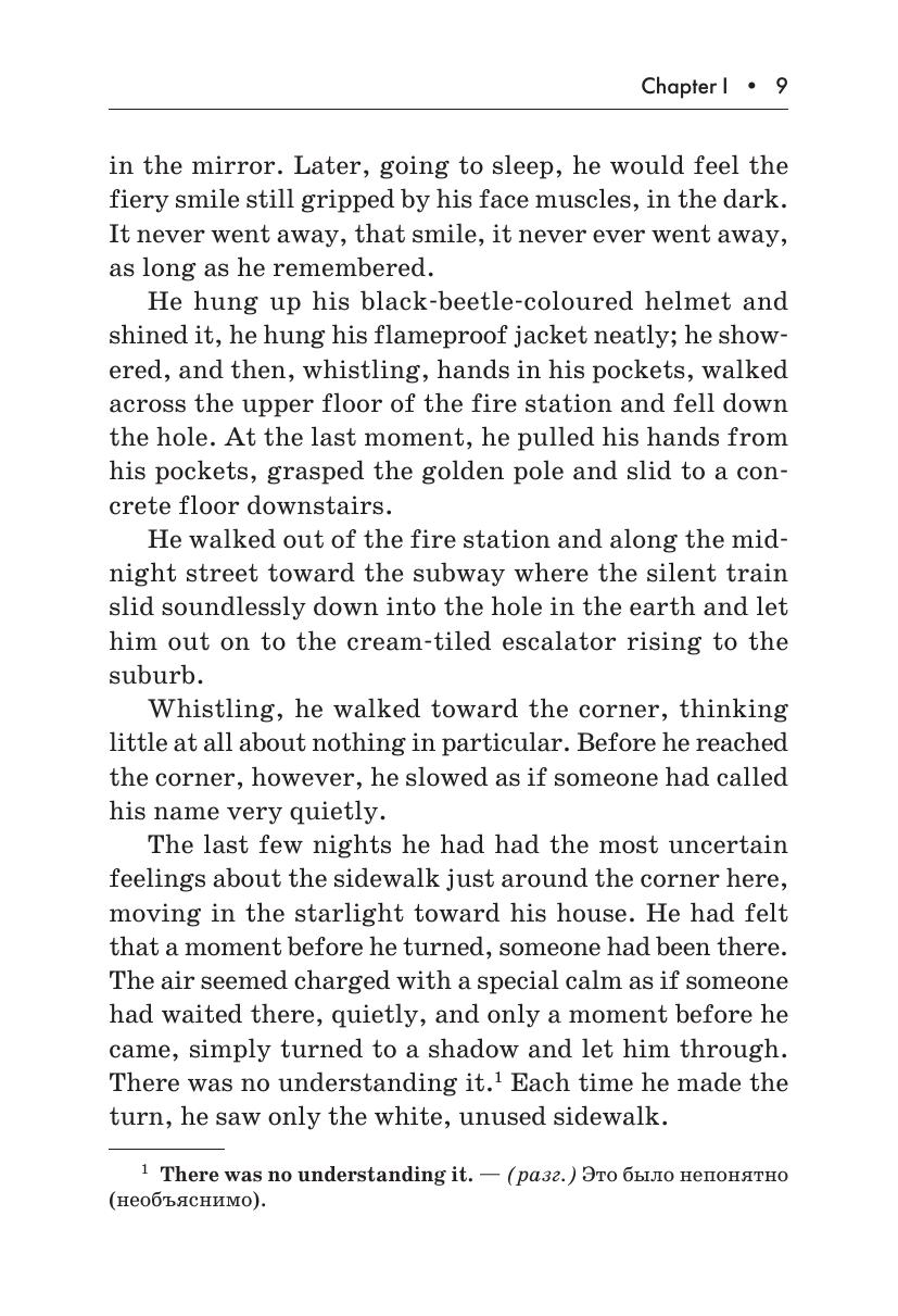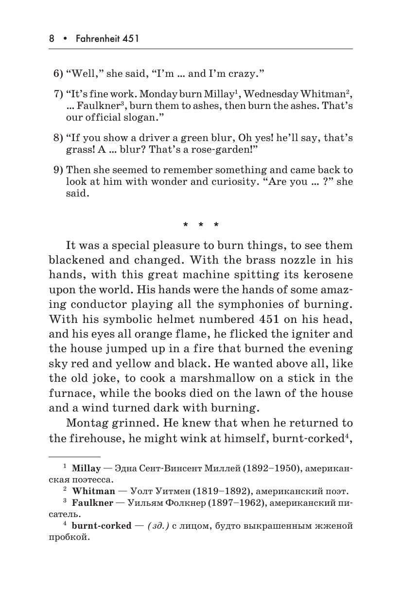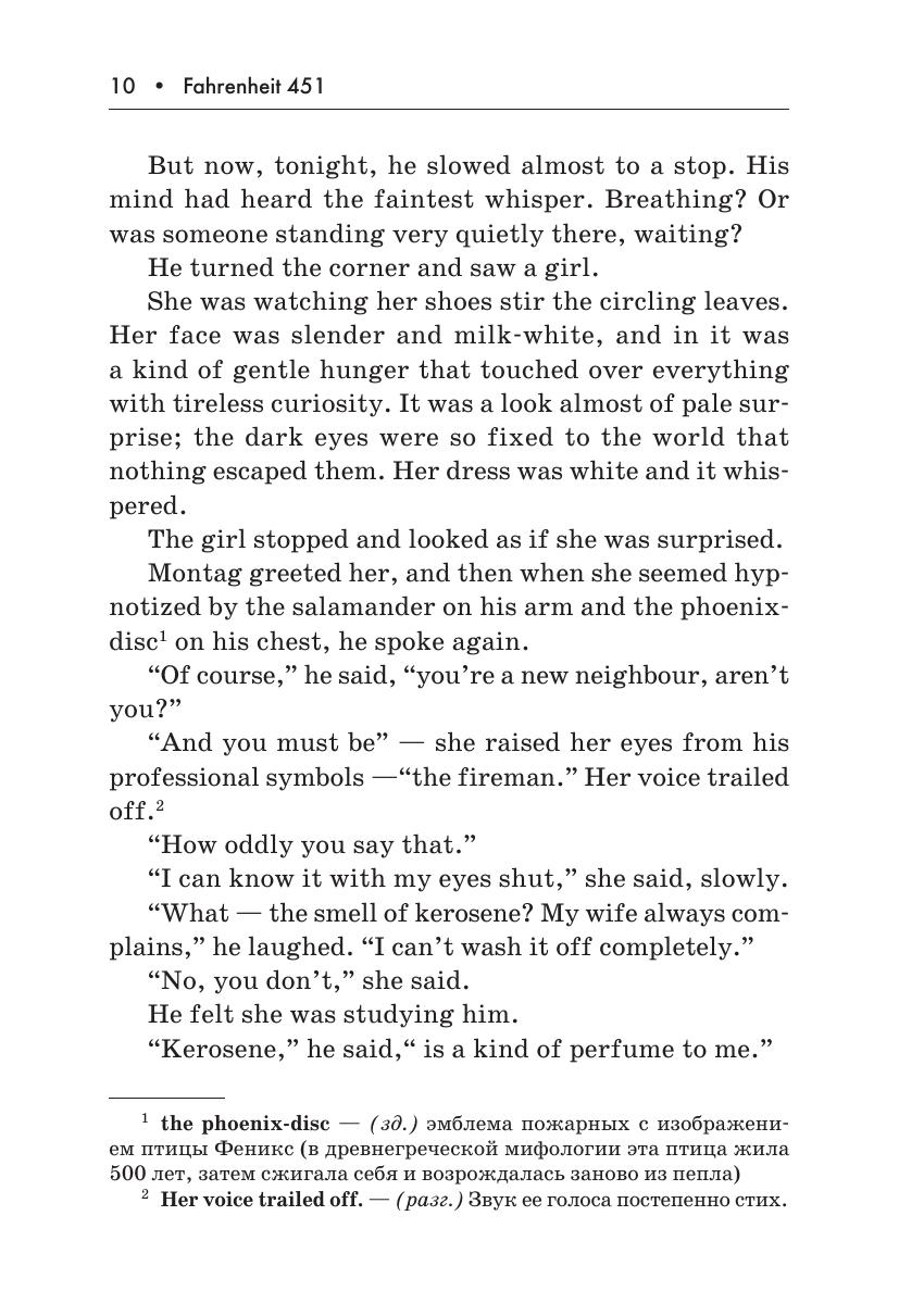 В книге представлен роман-антиутопия Рэя Брэдбери «451º по Фаренгейту» — классика научной фантастики. Издание содержит сокращенный и адаптированный текст романа, снабжено словарем, постраничными комментариями, лексико-грамматическими упражнениями, творческими заданиями, заданиями на перевод, вопросами на восприятие и для обсуждения. Пособие адресовано учащимся 9–11 классов школ с углубленным изучени ем английского языка, а также широкому кругу читателей, имеющих уровень языковой подготовки Intermediate.