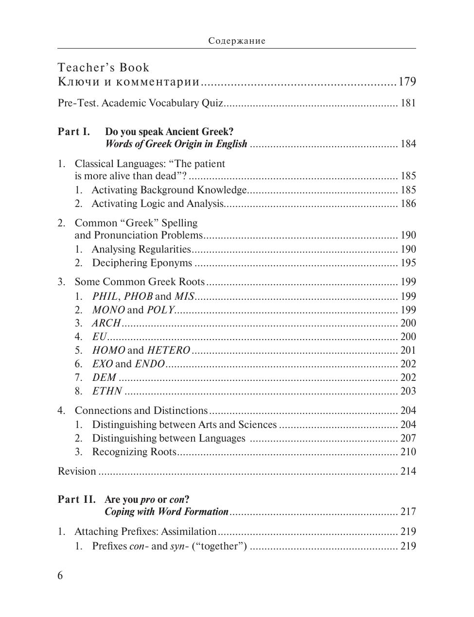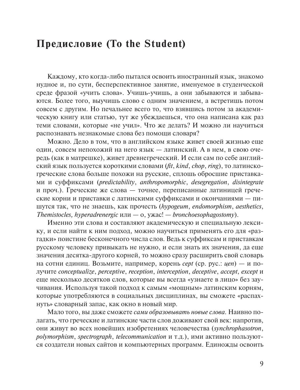 Учебное пособие помогает правильно понимать, интерпретировать и использовать англоязычную академическую лексику в контексте общественных наук, в увлекательной форме развивая аналитические, лингвистические и общекультурные навыки, способствующие эффективности обучения в университете и успешной коммуникации в международной научной среде. В основе подхода лежит словообразование, не свойственное современному английскому языку, но характерное для латинско-греческих заимствований, составляющих порой до 90% лексики научного текста. Умение оперировать этим словообразованием позволяет не только понимать академическую лексику и терминологию без словарей, но и правильно пользоваться ею при написании научного текста. Учебник содержит ключи и пояснения на русском языке, поэтому его можно использовать как в студенческой аудитории, так и в самостоятельной работе специалистов при подготовке публикаций на английском языке.