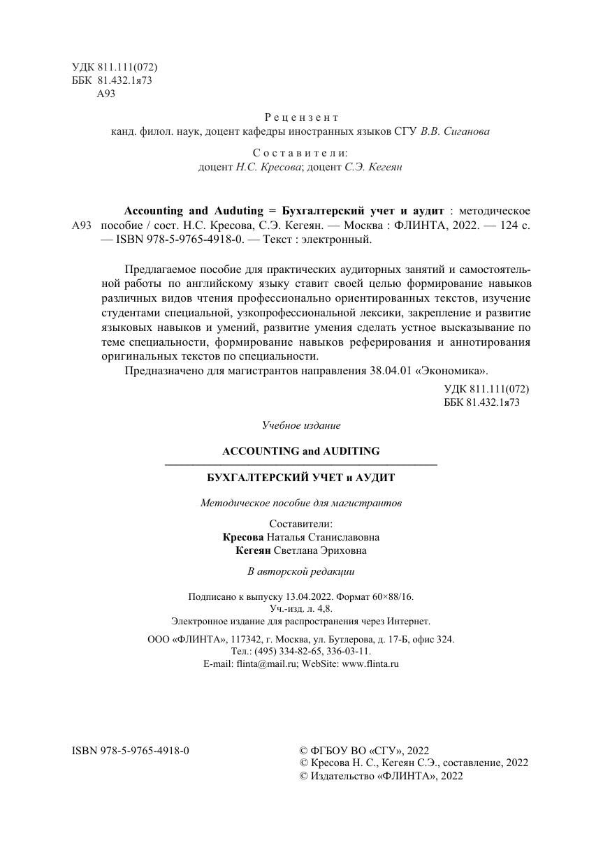 Accounting and Auduting = Бухгалтерский учет и аудит