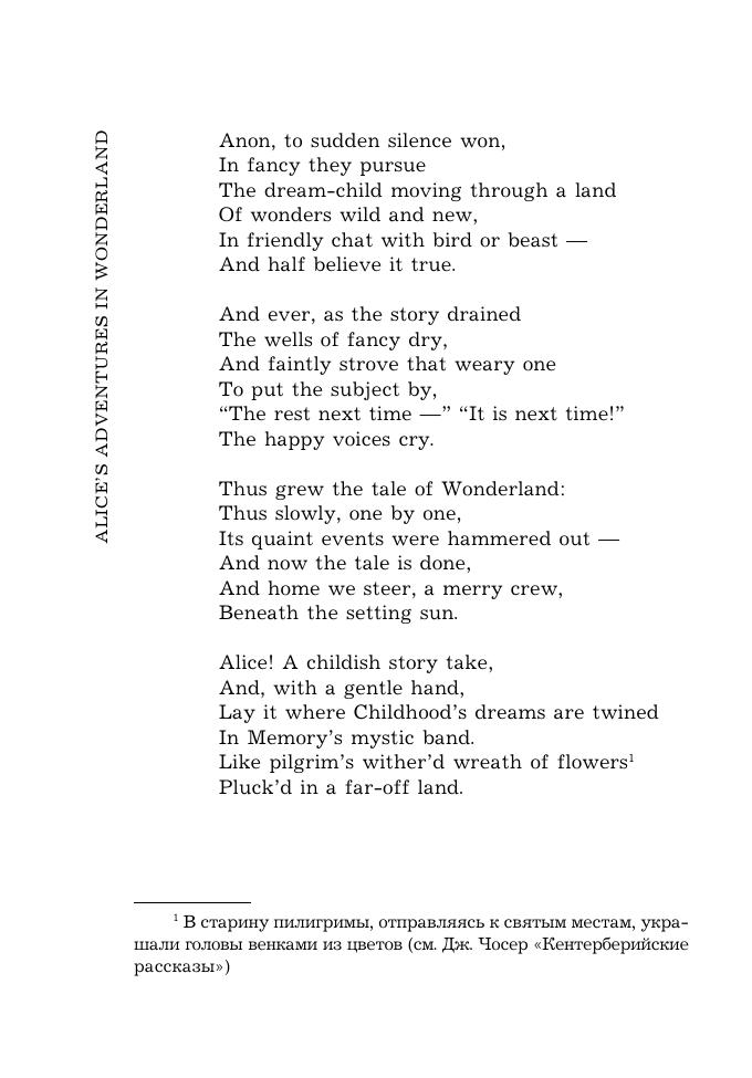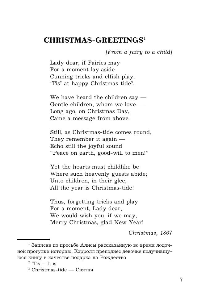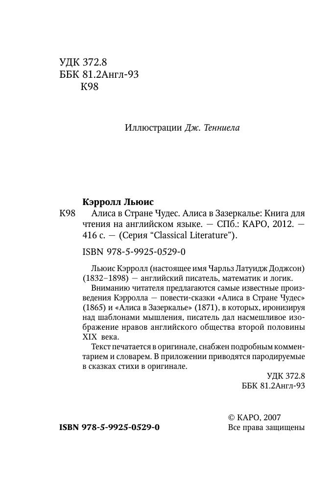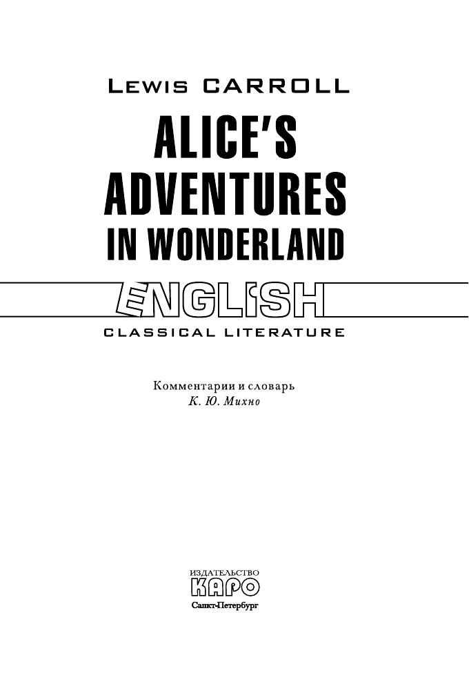 Льюис Кэрролл (настоящее имя Чарльз Латуидж Доджсон) (1832–1898) — английский писатель, математик и логик. Вниманию читателя предлагаются самые известные произведения Кэрролла — повести-сказки «Алиса в Стране Чудес» (1865) и «Алиса в Зазеркалье» (1871), в которых, иронизируя над шаблонами мышления, писатель дал насмешливое изображение нравов английского общества второй половины XIX века. Текст печатается в оригинале, снабжен подробным комментарием и словарем. В приложении приводятся пародируемые в сказках стихи в оригинале.