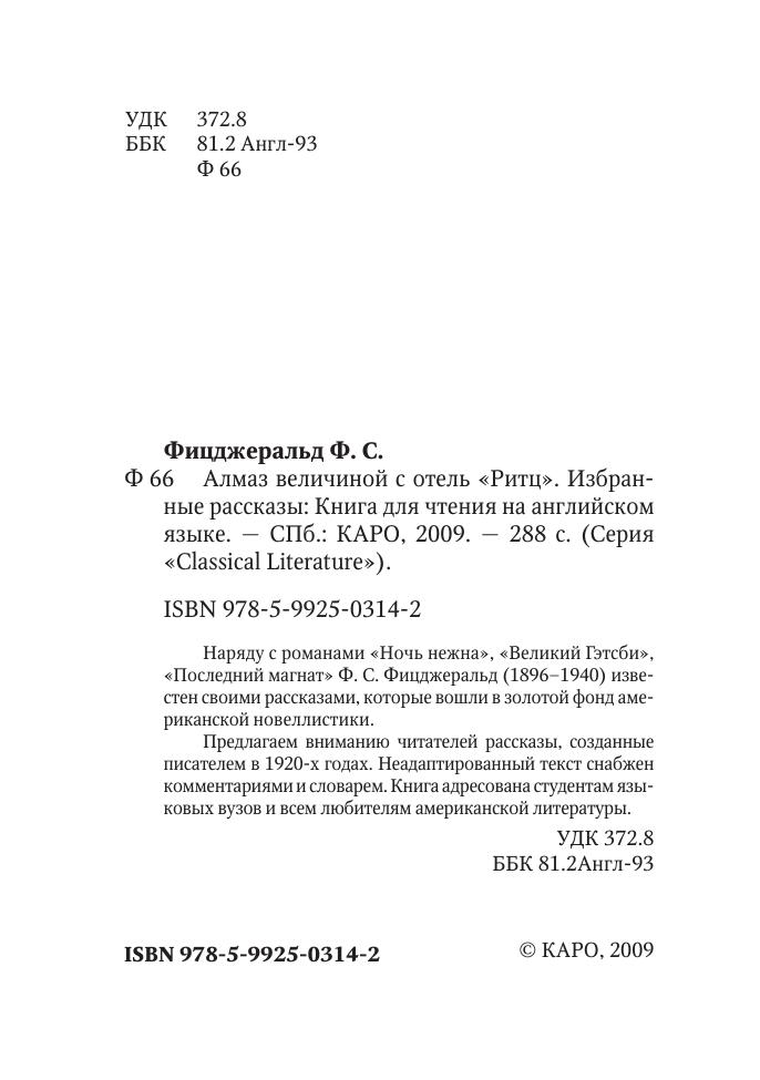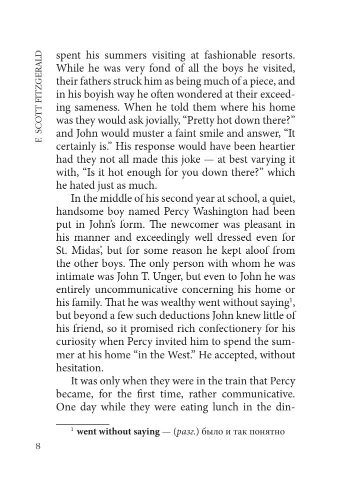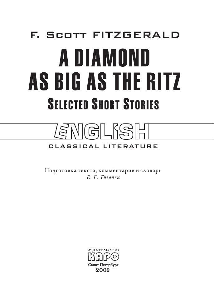 Наряду с романами «Ночь нежна», «Великий Гэтсби», «Последний магнат» Ф. С. Фицджеральд (1896–1940) известен своими рассказами, которые вошли в золотой фонд американской новеллистики. (кн.д/чт.на англ.яз., неадаптир.) Предлагаем вниманию читателей рассказы, созданные писателем в 1920-х годах. Неадаптированный текст снабжен комментариями и словарем. Книга адресована студентам языковых вузов и всем любителям американской литературы.