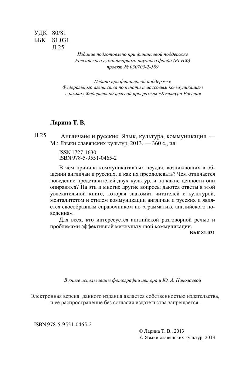 В чем причина коммуникативных неудач, возникающих в общении англичан и русских, и как их преодолевать? Чем отличается поведение представителей двух культур, и на какие ценности они опираются? На эти и многие другие вопросы даются ответы в этой увлекательной книге, которая знакомит читателей с культурой, менталитетом и стилем коммуникации англичан и русских и является своеобразным справочником по «грамматике английского поведения». Для всех, кто интересуется английской разговорной речью и проблемами эффективной межкультурной коммуникации.