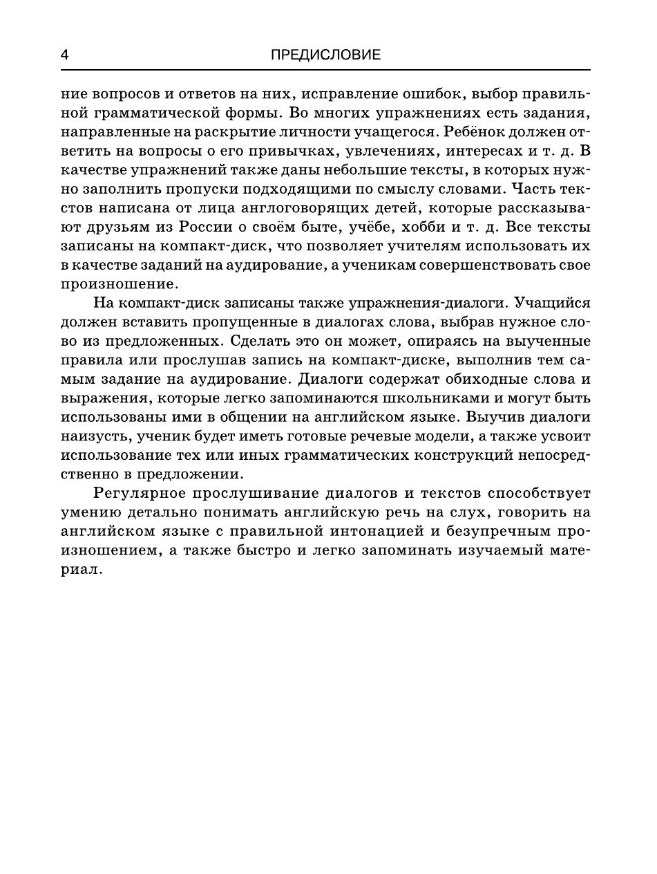 Сборник представляет собой пособие по изучению и закреплению основ английской грамматики. Книга предназначена для школьников. Материал сборника разделен на две главы. Каждая глава начинается со словарика. В словарике даны новые слова, использующиеся в упражнениях. Грамматические правила даны после словарика. Они представлены очень наглядно — в виде простых схем. Каждое правило проиллюстрировано примером, что способствует его быстрому запоминанию. Большое количество разнообразных упражнений поможет учащемуся закрепить изученные правила и довести навык владения ими до автоматизма. В виде упражнений даны также небольшие тексты и диалоги, которые повествуют школьникам о жизни их англоговорящих сверстников. Кроме того, в сборнике представлены задания на развитие творческого мышления учеников и умение не только отвечать на вопросы по тексту, но и рассказывать о себе. Все тексты и диалоги записаны на компакт-диск, что поможет учащимся в выполнении упражнений и совершенствовании произношения, а учителям позволит использовать их в качестве заданий на аудирование.