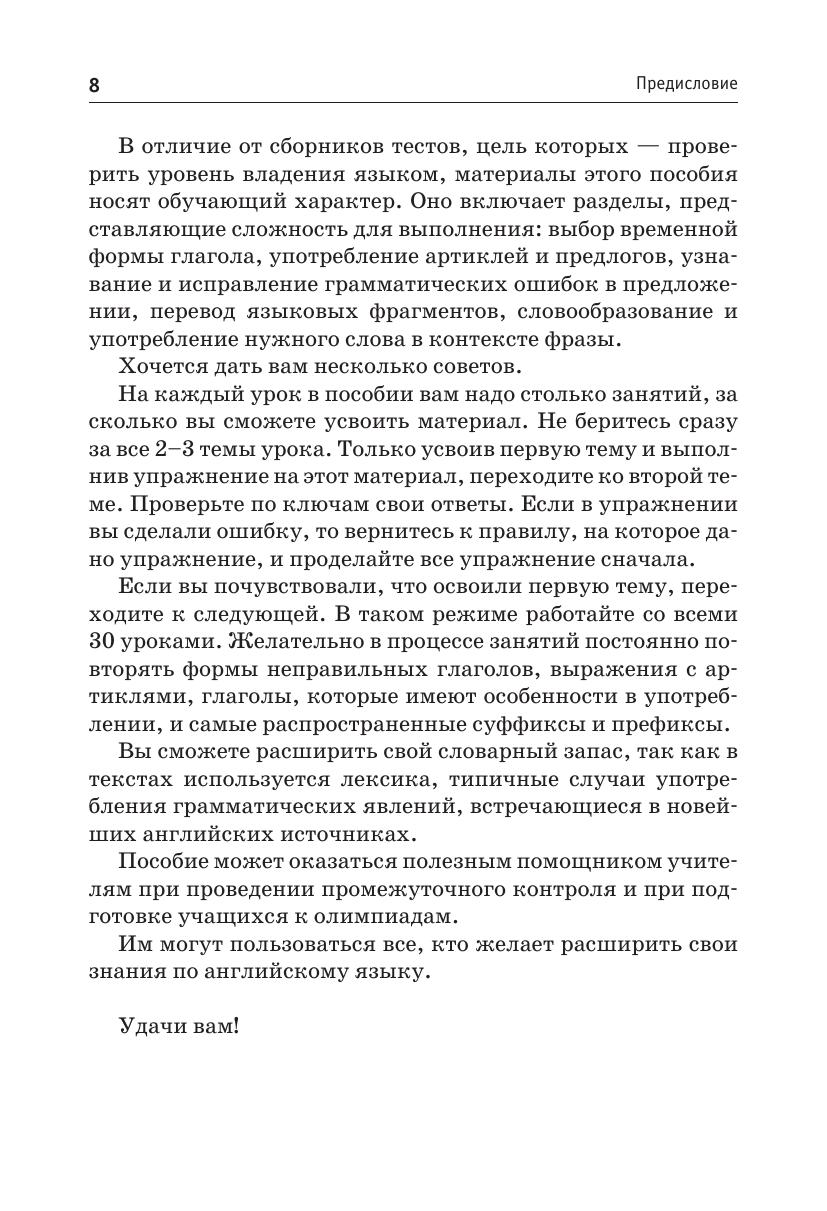 Пособие поможет учащимся повторить и систематизировать программный материал по грамматике и лексике английского языка, а также будет полезно педагогам при проведении промежуточного контроля.