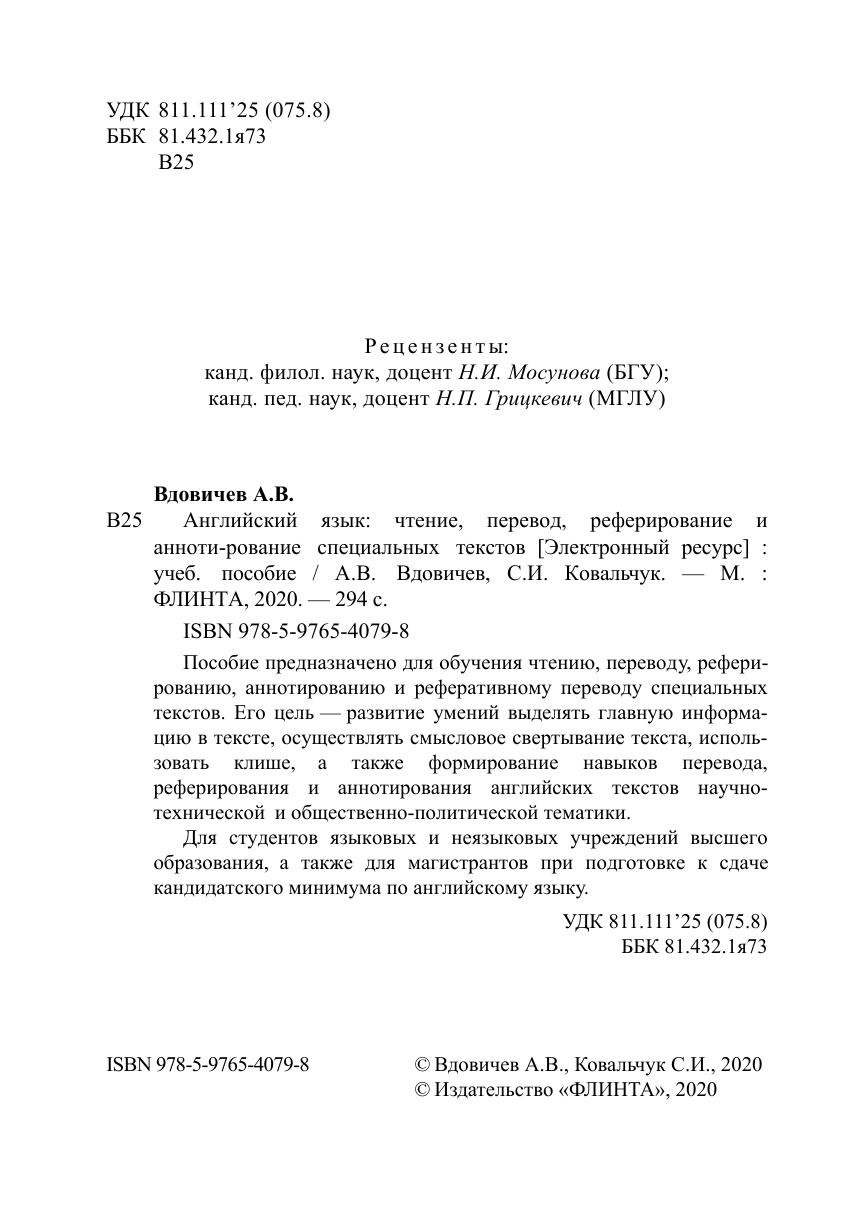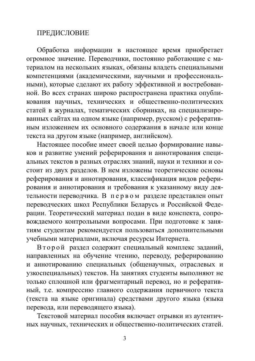 Пособие предназначено для обучения чтению, переводу, реферированию, аннотированию и реферативному переводу специальных текстов. Его цель — развитие умений выделять главную информацию в тексте, осуществлять смысловое свертывание текста, использовать клише, а также формирование навыков перевода, реферирования и аннотирования английских текстов научно-технической и общественно-политической тематики.