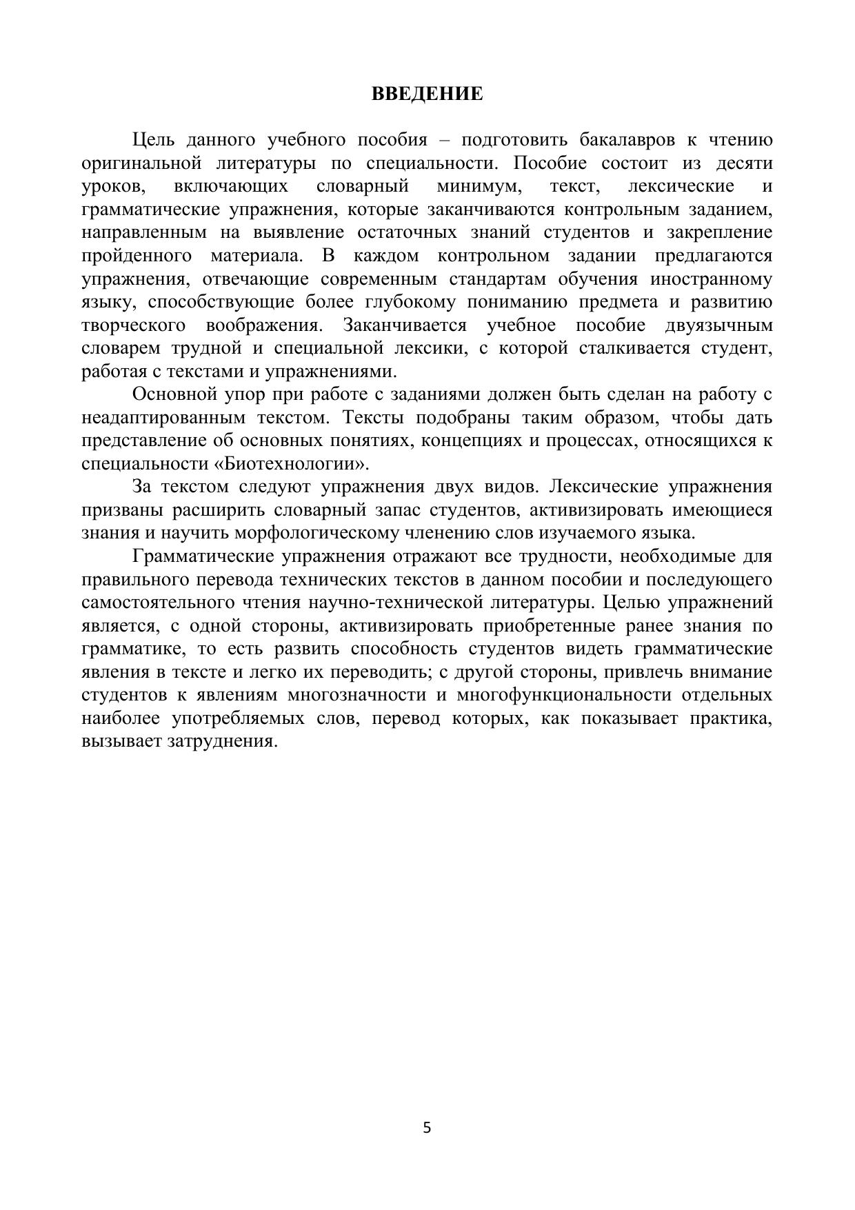 Цель пособия – подготовить студентов к чтению оригинальной литературы по специальности «Биотехнология».