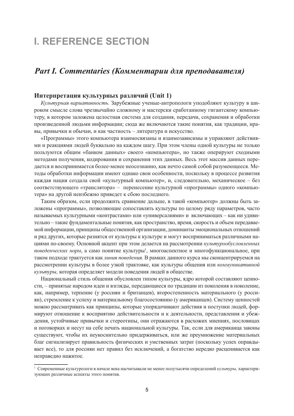 Книга для преподавателя является дополнением к представленному в учебнике базовому курсу и содержит обширный справочный материал с подробными поурочными комментариями и анализом типичных ошибок, возникающих при общении россиян с англоговорящими партнерами в различных речевых ситуациях, а также возможные варианты выполнения заданий и тестов. Новаторским элементом является подборка аудиоматериалов, включающая авторские обучающие пьесы и песни межкультурной тематики, которые можно использовать как для аудиторной, так и для проектной работы. Соответствует современным требованиям Федерального государственного образовательного стандарта среднего профессионального образования и профессиональным квалификационным требованиям. Учебник предназначен для преподавателей английского языка колледжей и училищ.