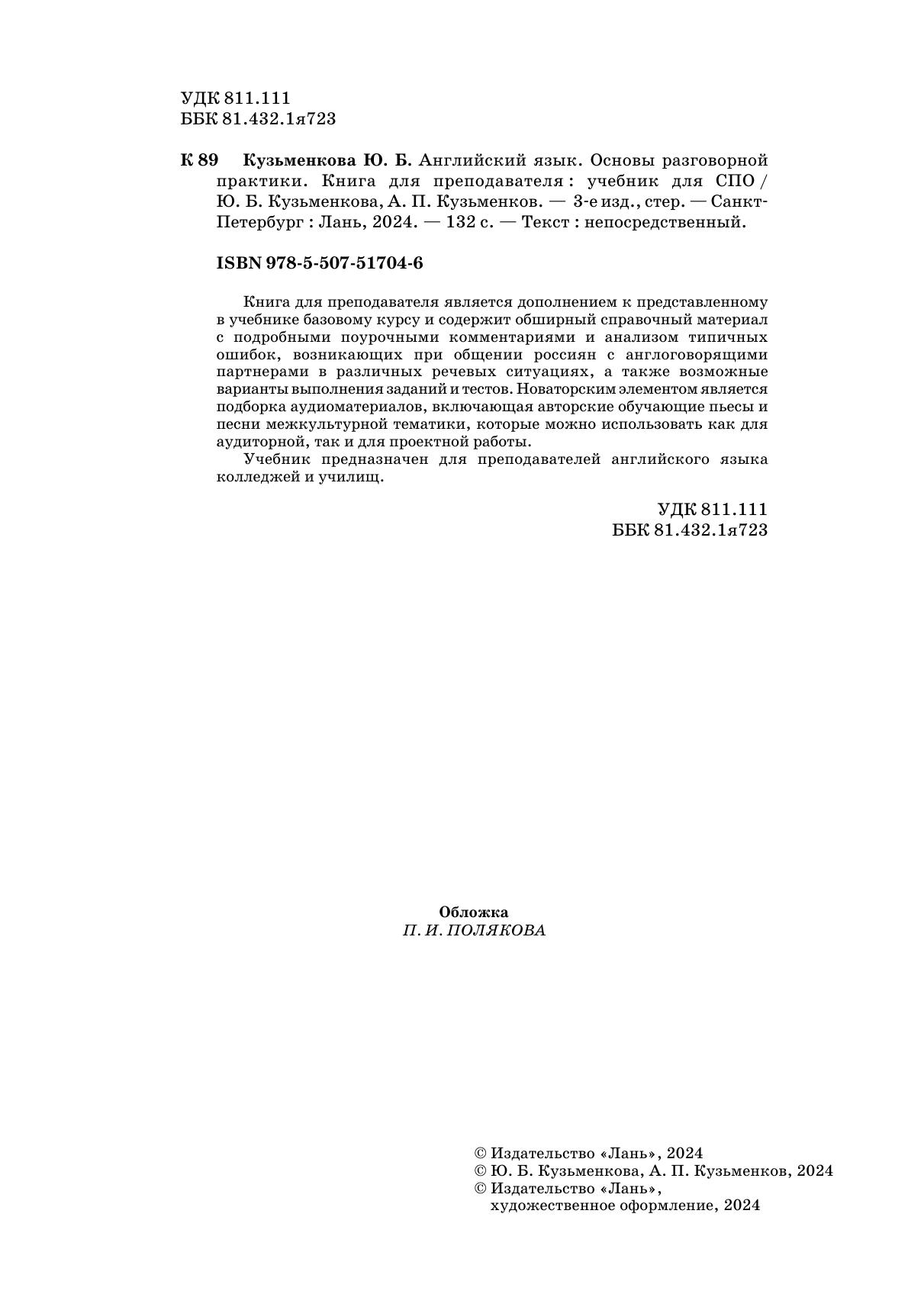 Книга для преподавателя является дополнением к представленному в учебнике базовому курсу и содержит обширный справочный материал с подробными поурочными комментариями и анализом типичных ошибок, возникающих при общении россиян с англоговорящими партнерами в различных речевых ситуациях, а также возможные варианты выполнения заданий и тестов. Новаторским элементом является подборка аудиоматериалов, включающая авторские обучающие пьесы и песни межкультурной тематики, которые можно использовать как для аудиторной, так и для проектной работы. Соответствует современным требованиям Федерального государственного образовательного стандарта среднего профессионального образования и профессиональным квалификационным требованиям. Учебник предназначен для преподавателей английского языка колледжей и училищ.