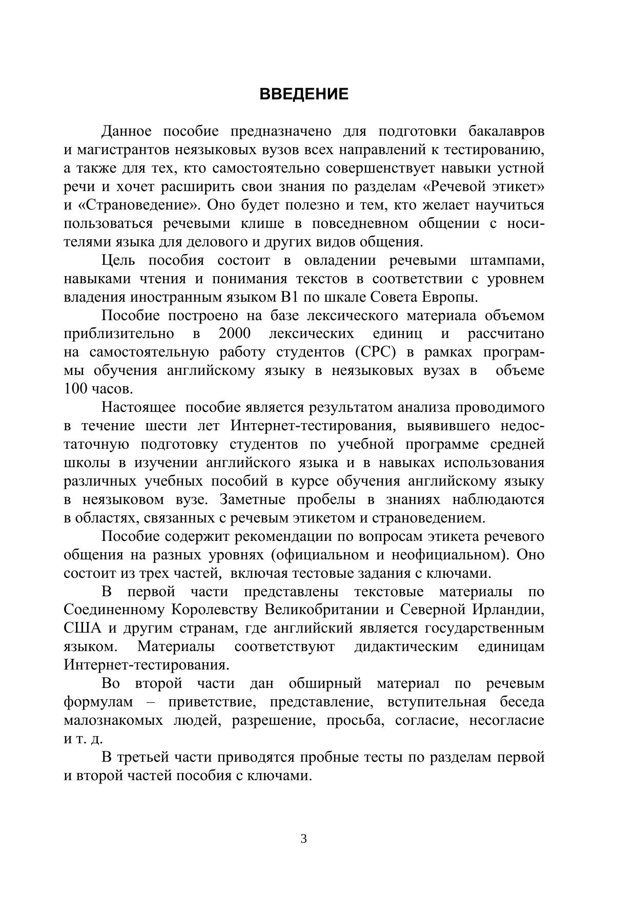 Учебное пособие состоит из трех частей и содержит необходимые для подготовки к интернет-экзамену тесты с ключами. Пособие предназначено для подготовки бакалавров и магистрантов к тестированию в рамках компетентностного подхода ФЭПО по дидактическим единицам «Страноведение» и «Речевой этикет». Материалы пособия могут использоваться как при подготовке к тестированию с преподавателем, так и для самостоятельной работы.