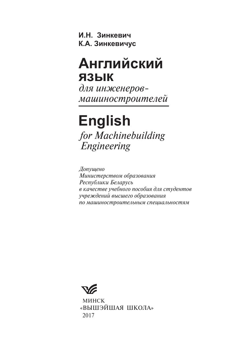 Английский язык для инженеров-машиностроителей. English for Maсhinebuilding Engineering