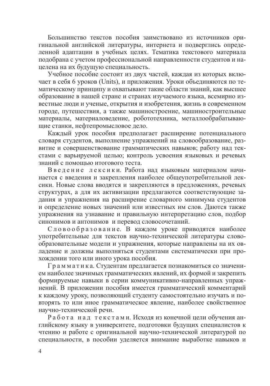 Одной из основных целеустановок учебного пособия является организация общетехнического и профессионально-ориентированного обучения английскому языку студентов машиностроительных специальностей, обусловленная коммуникативными и познавательными