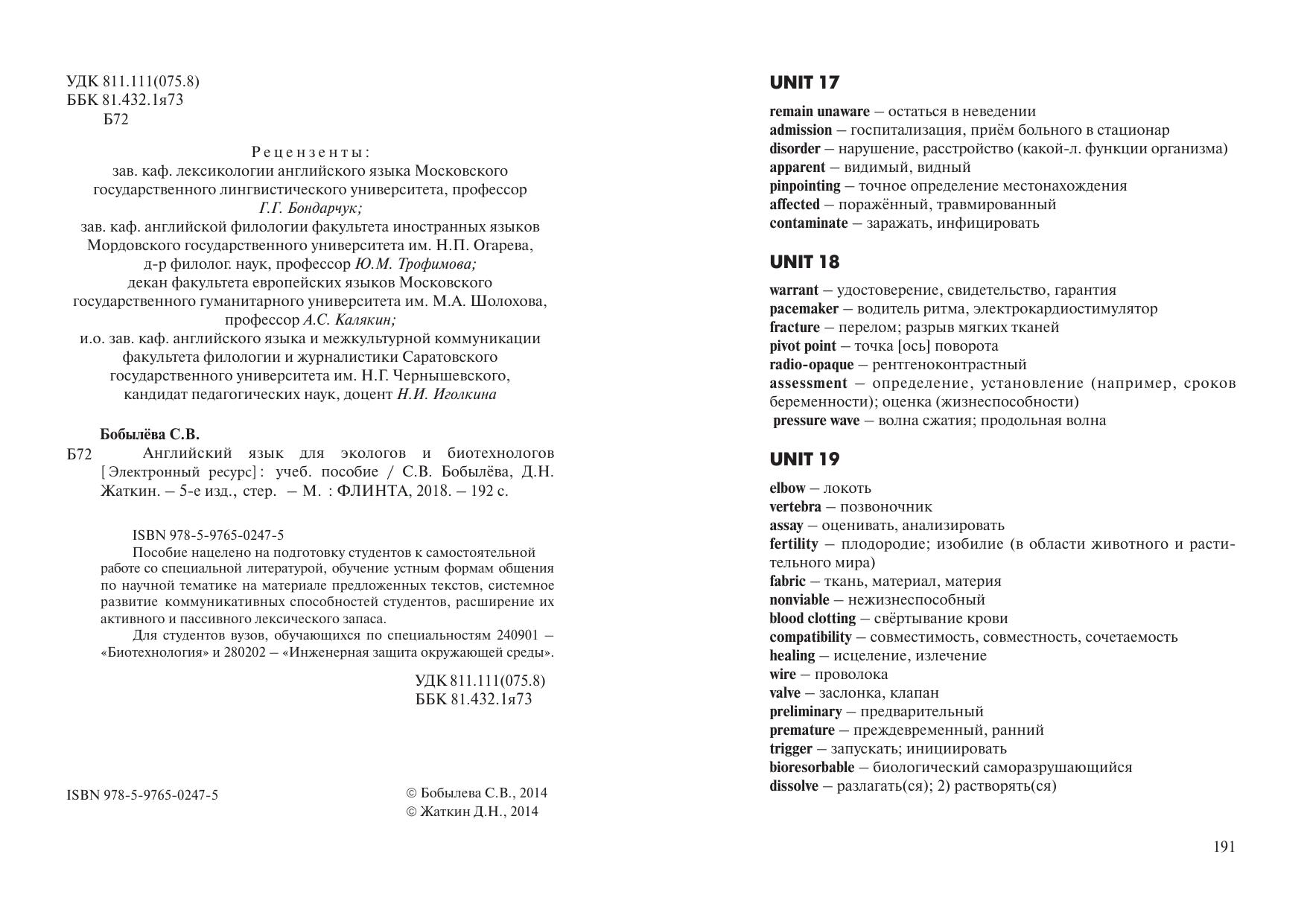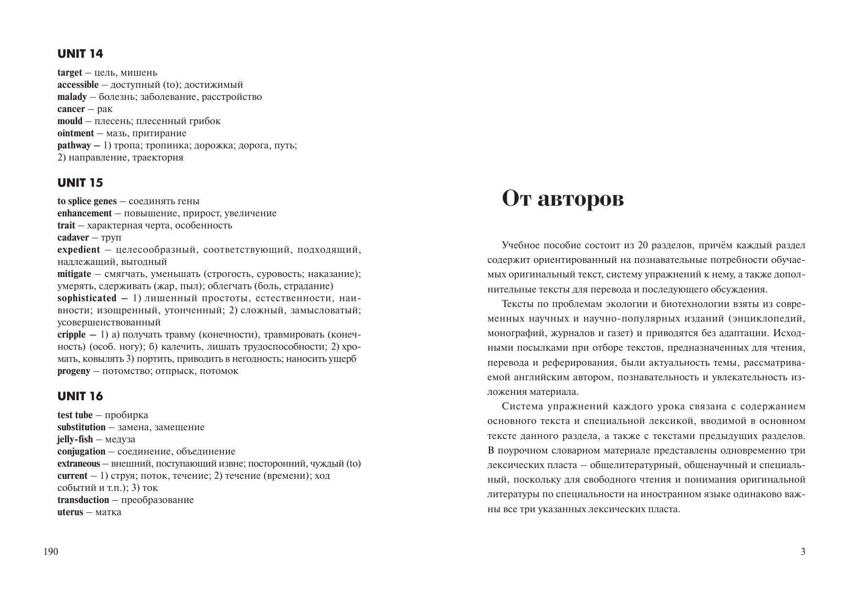 Пособие нацелено на подготовку студентов к самостоятельной работе со специальной литературой, обучение устным формам общения по научной тематике на материале предложенных текстов, системное развитие коммуникативных способностей студентов, расширение их активного и пассивного лексического запаса.
