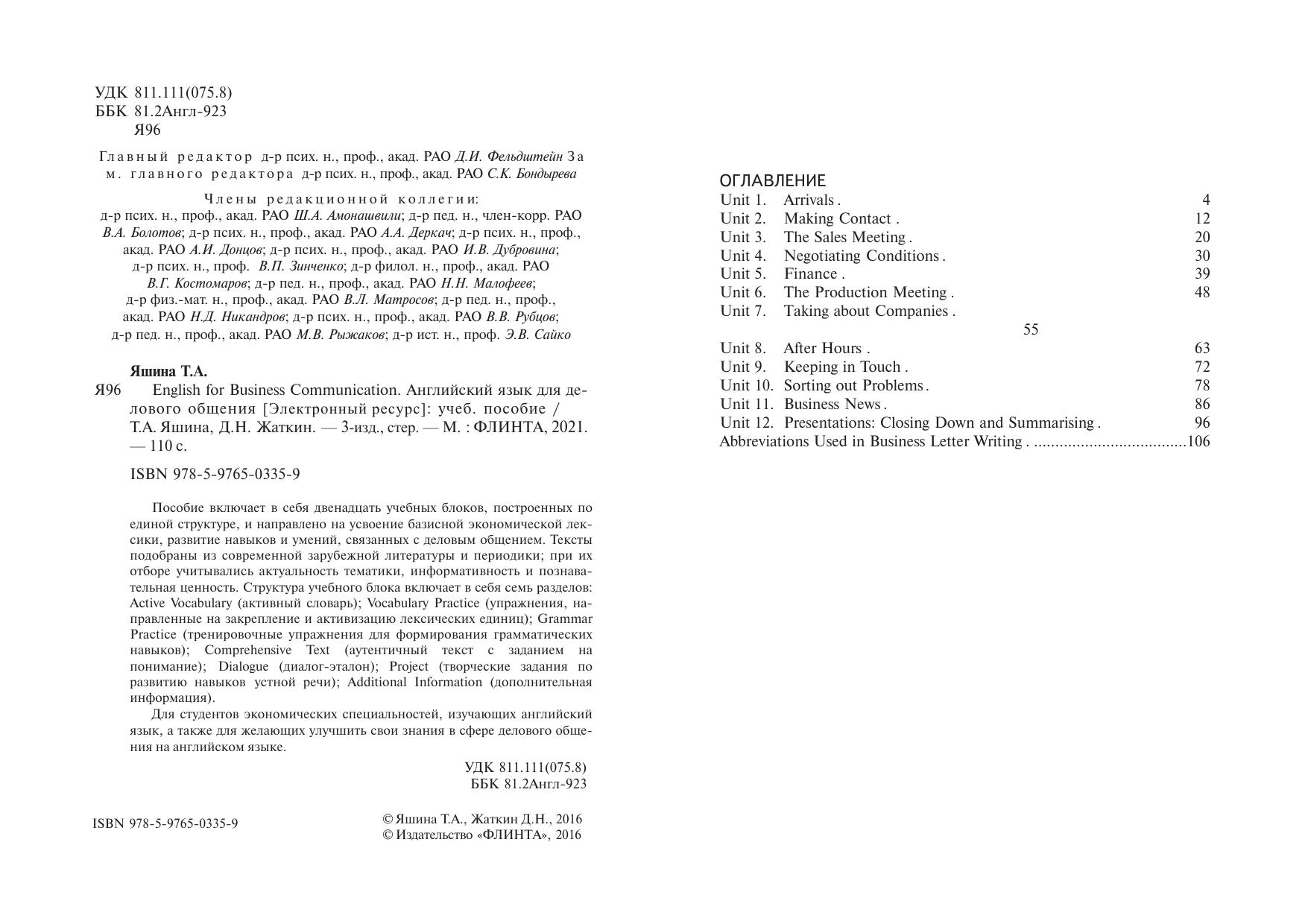 Пособие включает в себя двенадцать учебных блоков, построенных по единой структуре, и направлено на усвоение базисной экономической лексики, развитие навыков и умений, связанных с деловым общением. Тексты подобраны из современной зарубежной литературы и периодики, при их отборе учитывались актуальность тематики, информативность и познавательная ценность. Структура учебного блока включает в себя семь разделов: Active Vocabulary (активный словарь), Vocabulary Practice (упражнения, направленные на закрепление и активизацию лексических единиц), Grammar Рractice (тренировочные упражнения для формирования грамматических навыков), Comprehensive Text (аутентичный текст с заданием на понимание), Dialogue (диалог?эталон), Project (творческие задания по развитию навыков устной речи), Additional Information (дополнительная информация). Для студентов экономических специальностей, изучающих английский язык, а также для желающих улучшить свои знания в сфере делового общения на английском языке.