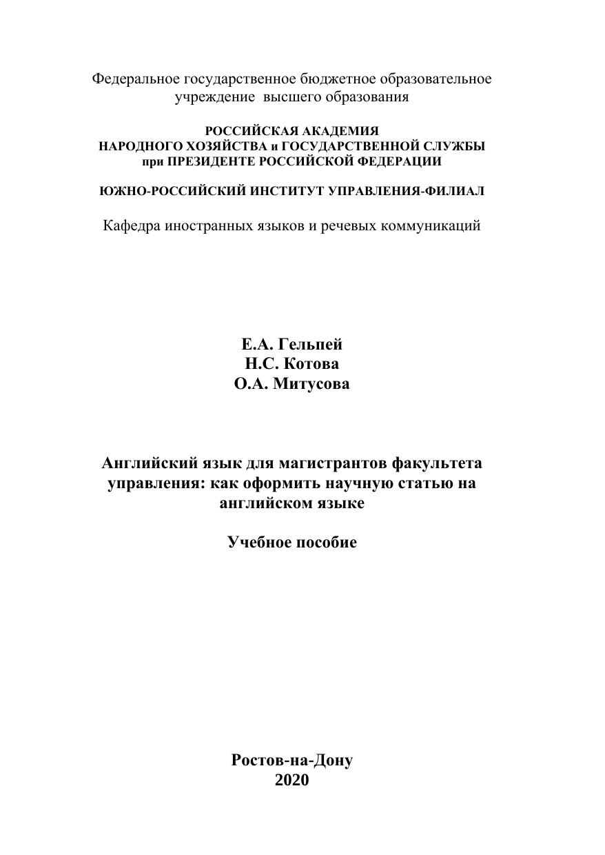 Английский язык для магистрантов факультета управления: как оформить научную статью на английском языке