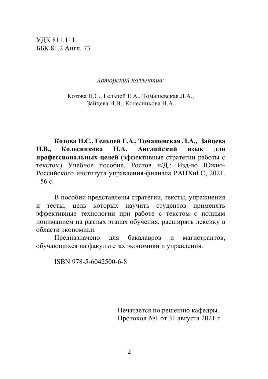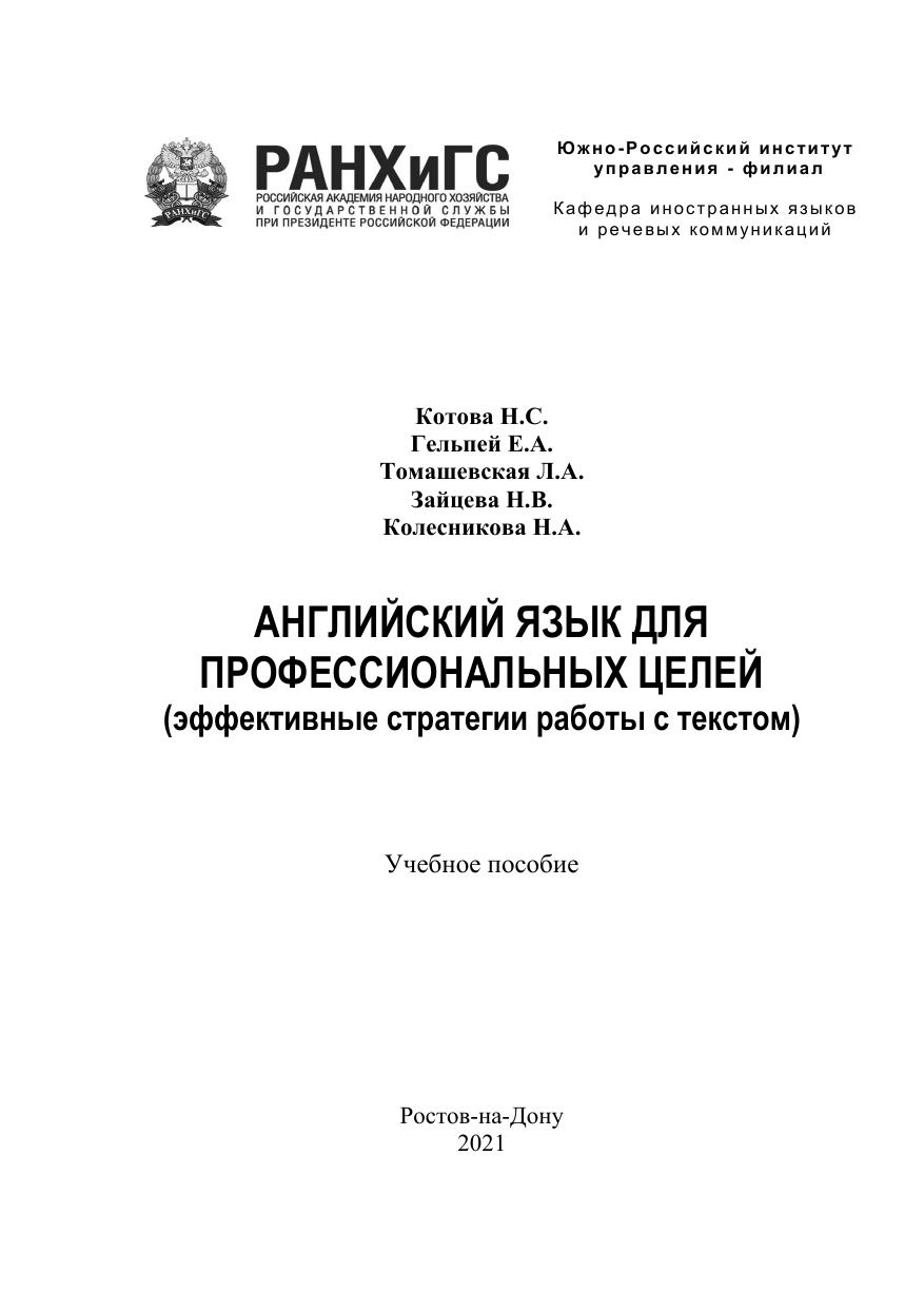 Английский язык для профессиональных целей (эффективные стратегии работы с текстом)