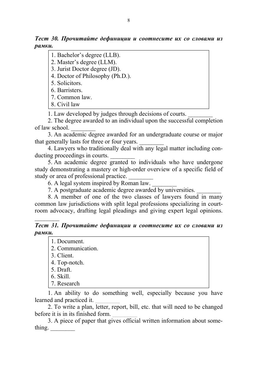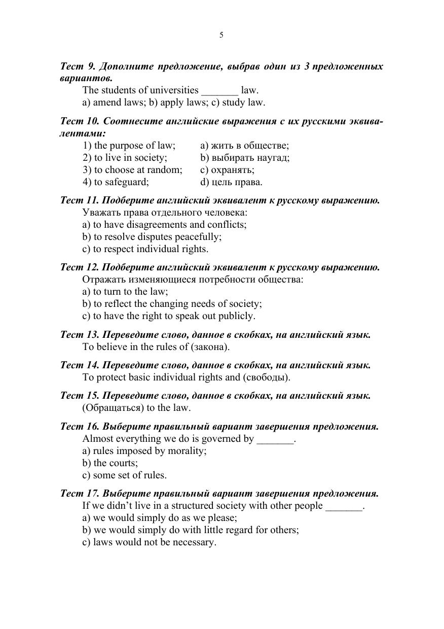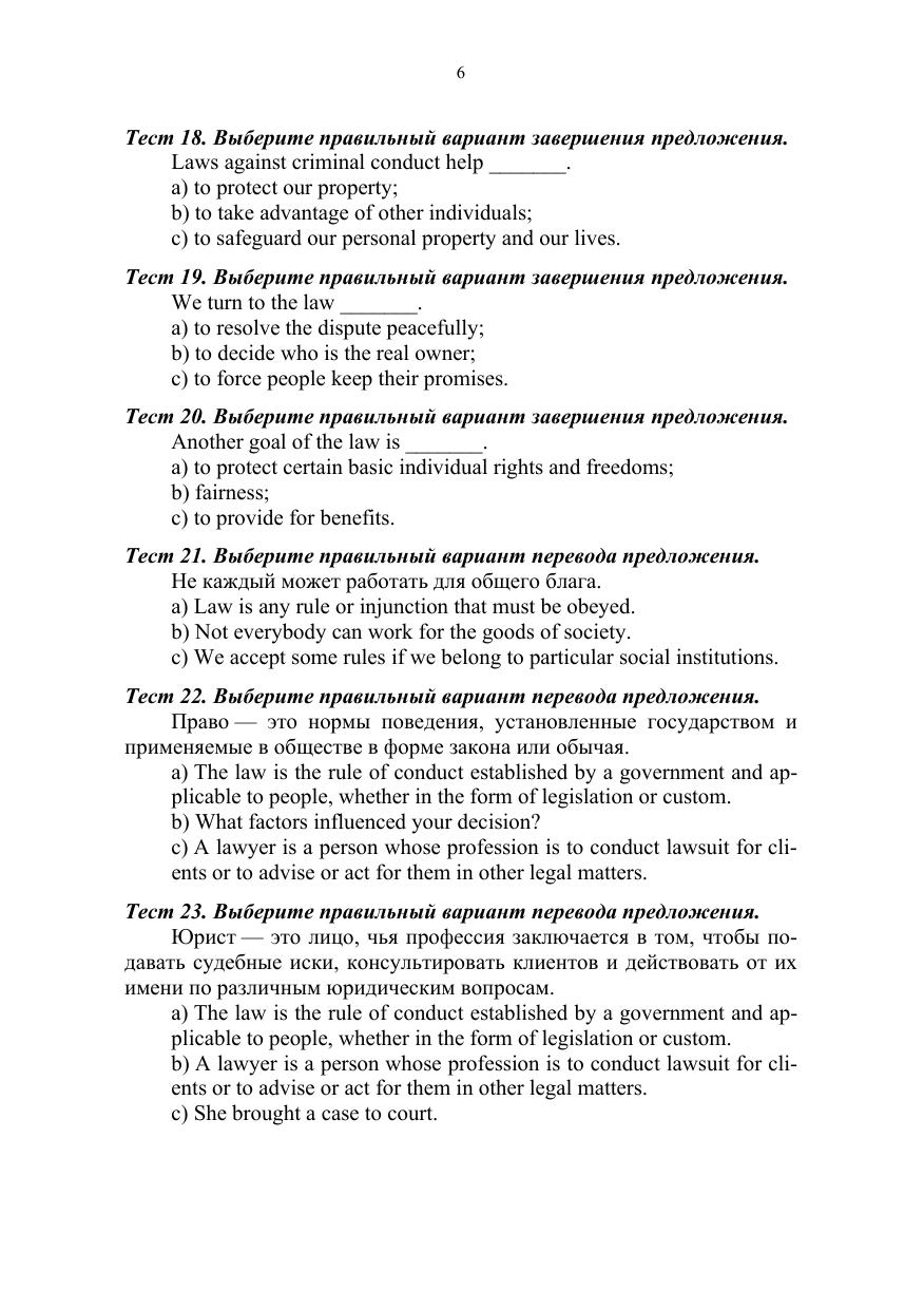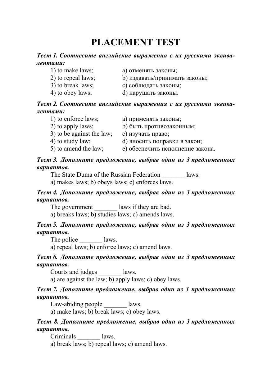 Учебное пособие ориентировано на развитие и совершенствование навыков и умений работы с аутентичными англоязычными текстами по юридической тематике: реферировать и анализировать извлеченную из текстов информацию профессионального характера. Базой для такой работы является расширение активного и пассивного словарного запаса путем выполнения лексико-грамматических упражнений и заданий, созданных на основе одного из крупнейших современных корпусов английского языка News on the Web (NOW). Тематика пособия включает конституционные права и свободы, вопросы трудового и семейного права, проблемы профилактики плагиата и борьбы с коррупцией. Соответствует современным требованиям Федерального государственного образовательного стандарта среднего профессионального образования и профессиональным квалификационным требованиям. Учебное пособие предназначено для студентов профессиональных образовательных организаций, обучающихся по юридическим направлениям подготовки. Материалы разделов Placement Test и Revision могут быть также использованы для студентов, обучающихся по другим направлениям подготовки.