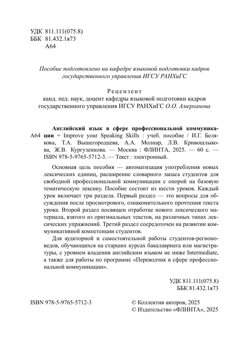 Английский язык в сфере профессиональной коммуникации = Improve your communication skills