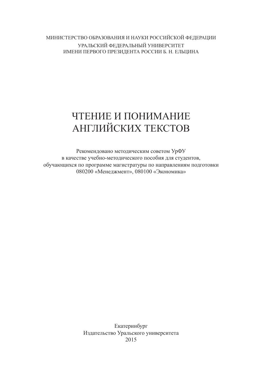 Учебно-методическое пособие включает пять разделов с аутентичным текстовым материалом на английском языке, который сопровождается комментариями и методическими указаниями по выполнению заданий на понимание текстов и развитие навыков извлечения важной информации. Пособие может быть использовано как для самостоятельной, так и для групповой подготовки специалистов по английскому языку. Для студентов старших курсов и слушателей магистратуры с уровнем владения английским языком не ниже B1 по Европейской системе уровней владения иностранным языком (Common European Framework of References for Languages).