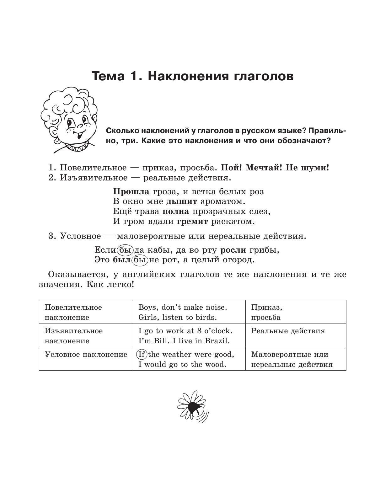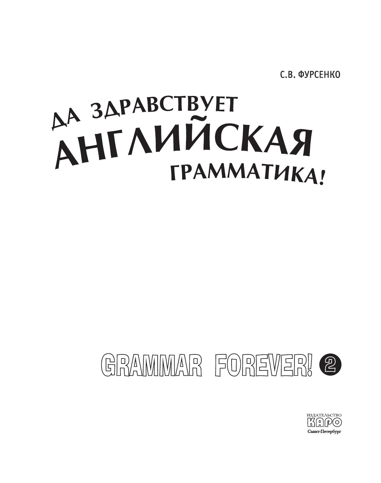 В этой книге Светлана Васильевна Фурсенко продолжает знакомить школьников с увлекательным миром английской грамматики. Учебное пособие включает 12 тем. Вы узнаете о трех наклонениях глаголов, об особенностях употребления английских времен, выполняя разнообразные задания (дописывание шуток, рифмовок, заполнение пропусков в рассказах и др.). Все это поможет вам с интересом и улыбкой запомнить основные грамматические правила английского языка.