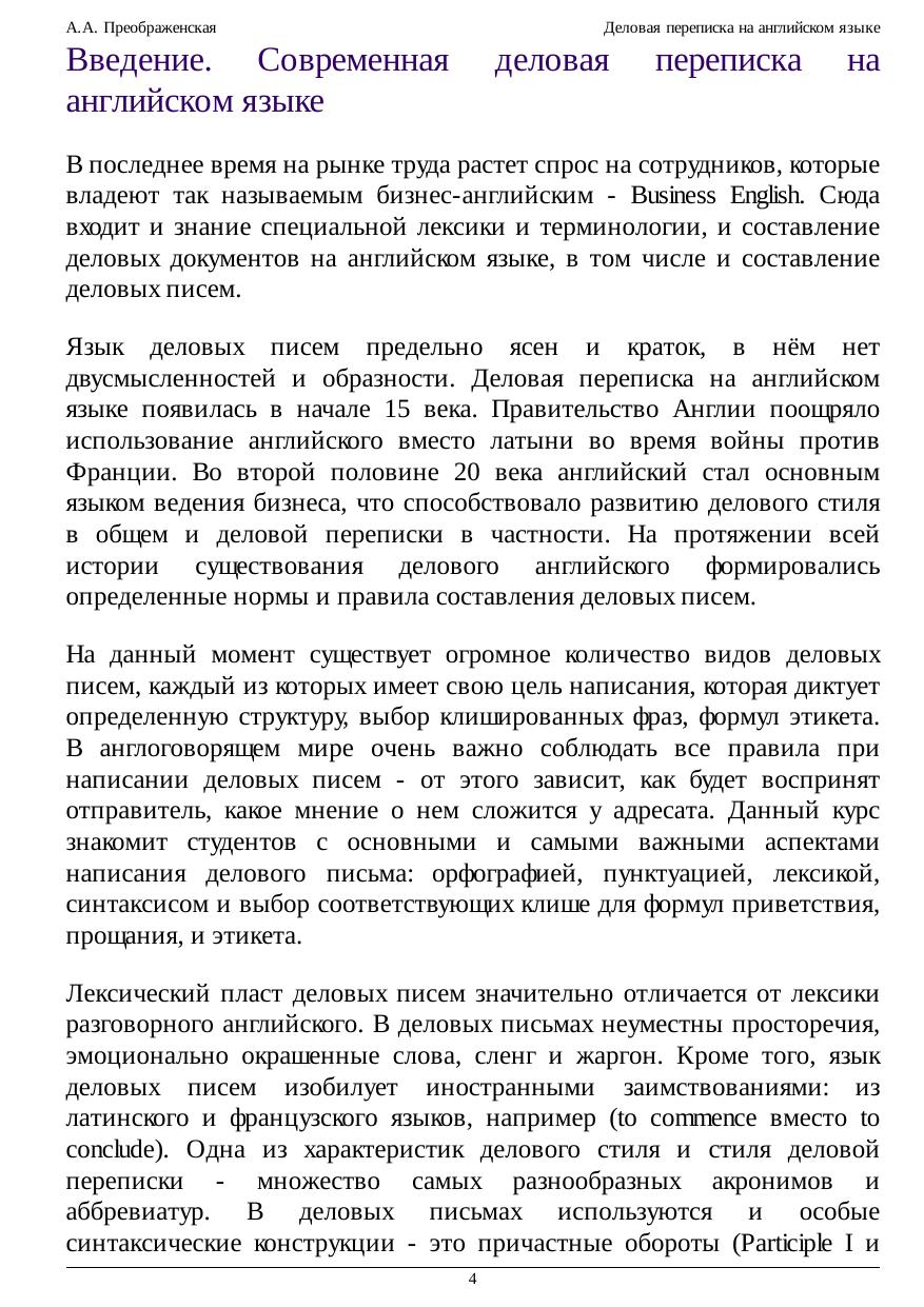 на развитие навыков составления деловых писем на английском языке. Курс разбит на восемь лекций, охватывающих обширный материал по лексике, синтаксису и