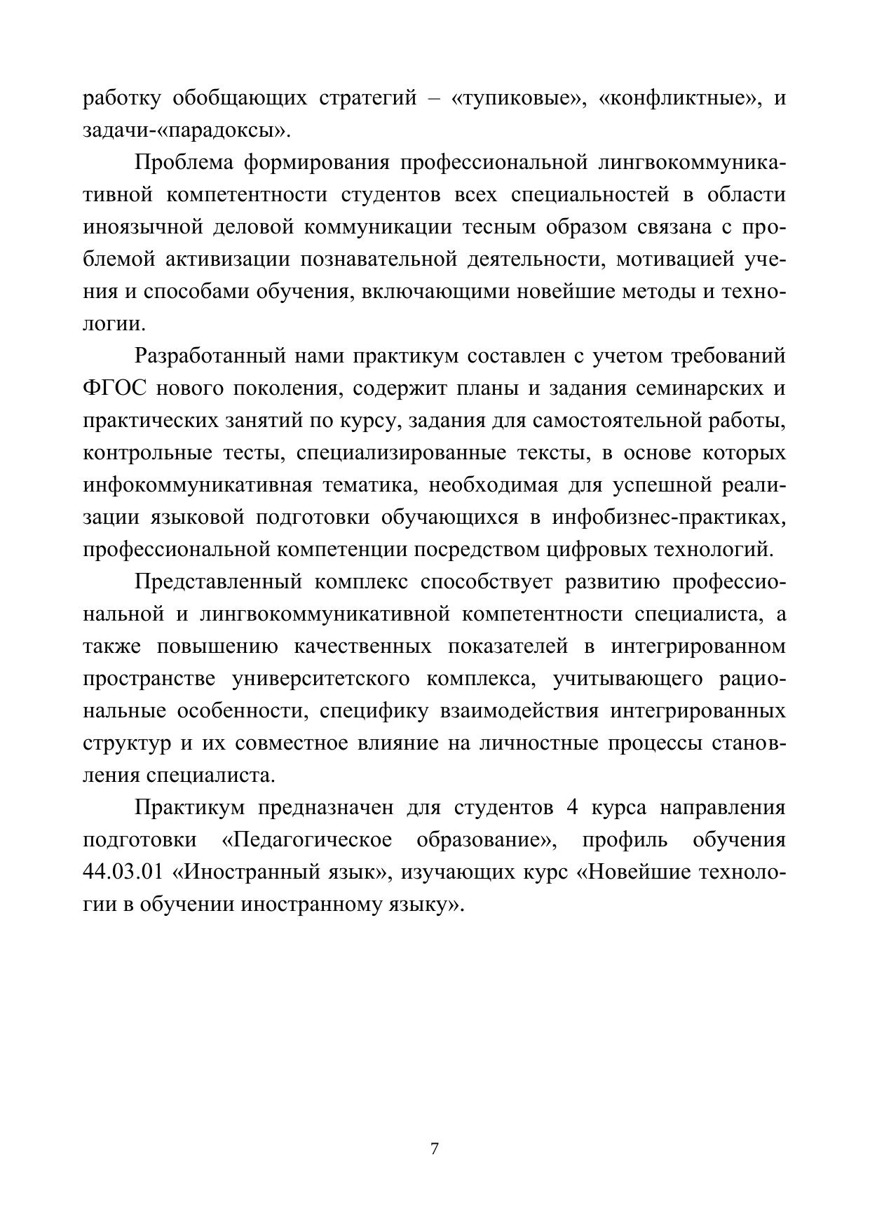 Практикум предназначен для студентов 4 курса направления подготовки «Педагогическое образование», профиль обучения 44.03.01 «Иностранный язык», изучающих курс «Новейшие технологии в обучении иностранному языку».