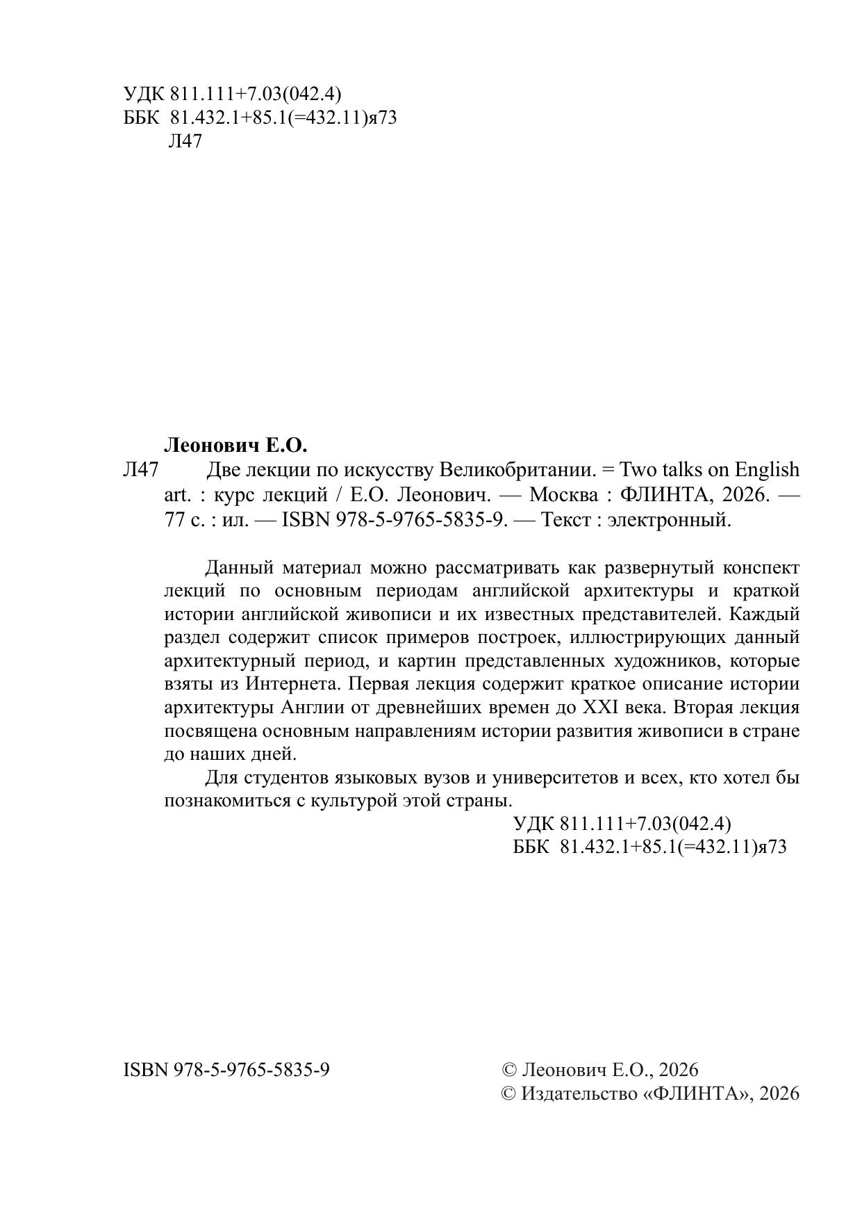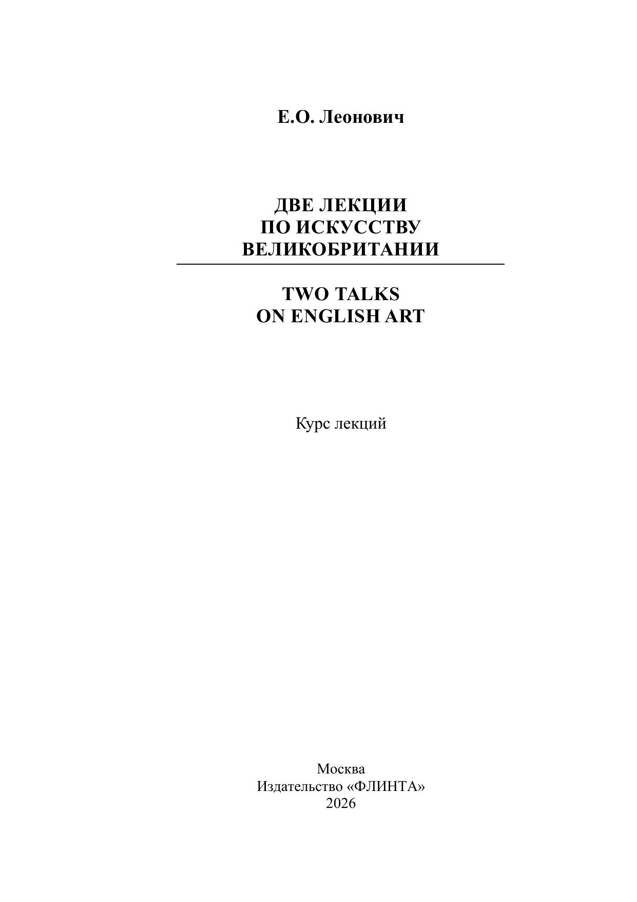 Две лекции по искусству Великобритании = Two talks on English art: курс лекций